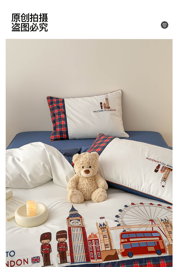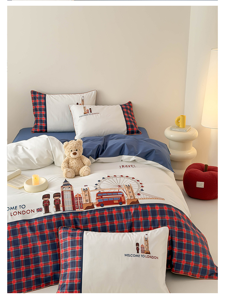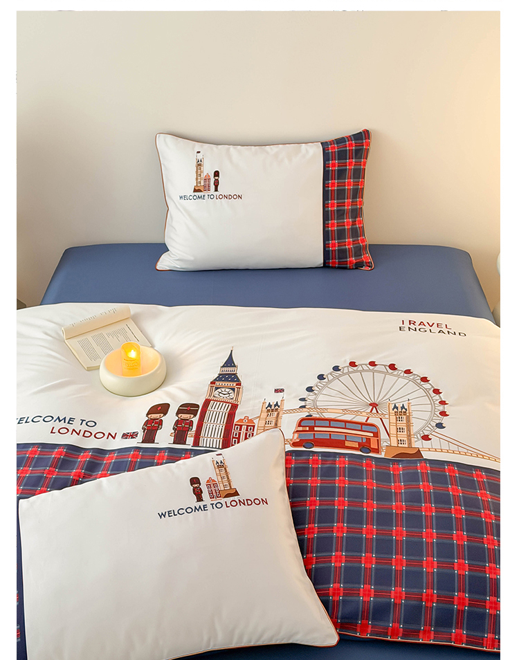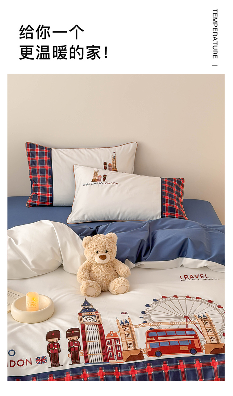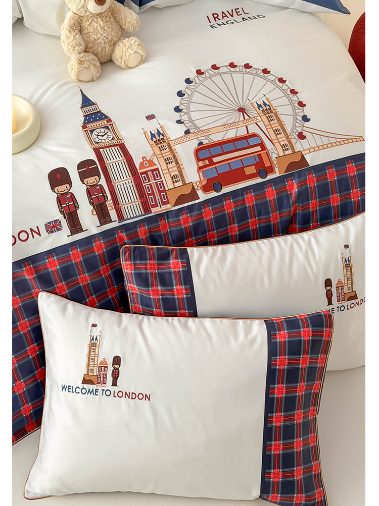 商品名称:(总)西西家居 2026春夏新款100S长绒棉纯棉数码印花绣花四件套-英伦小镇