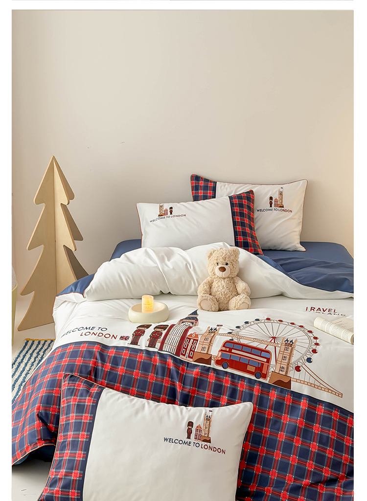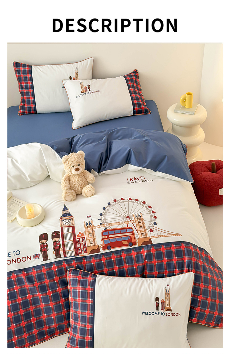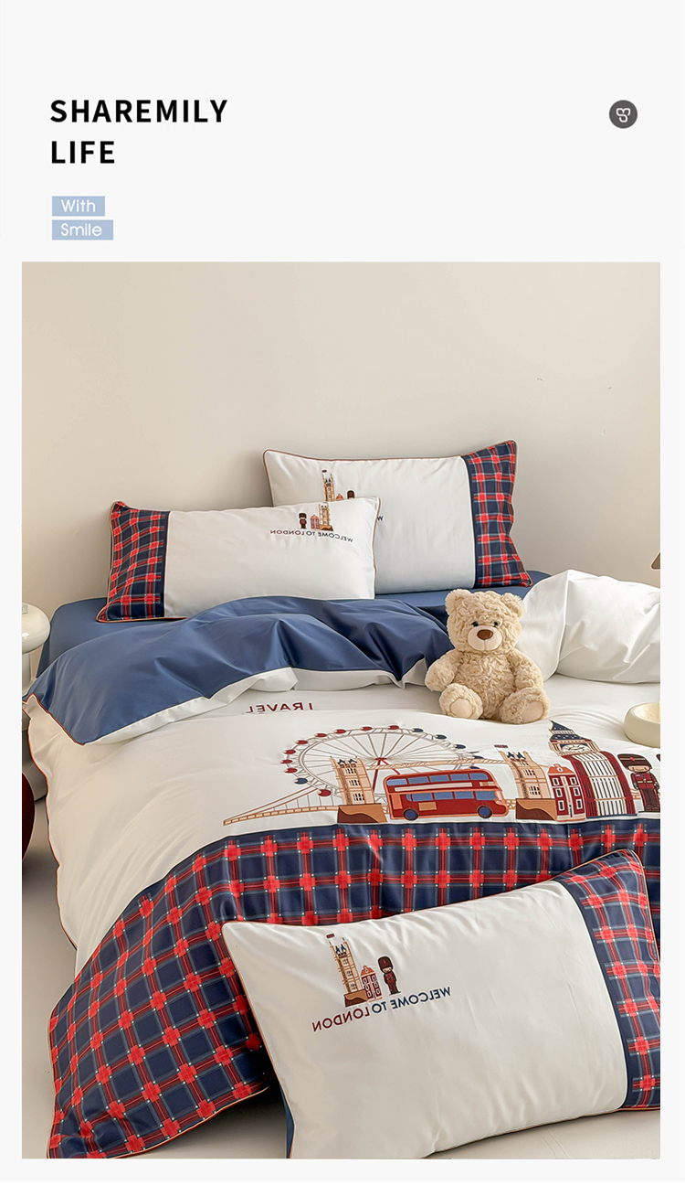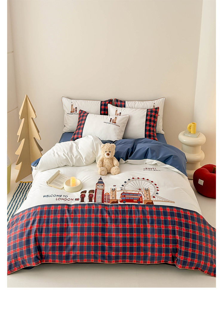 商品名称:(总)西西家居 2026春夏新款100S长绒棉纯棉数码印花绣花四件套-英伦小镇
