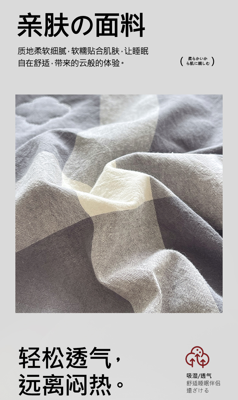 • 91家纺网 家纺一手货源 找家纺 宝士康家纺 2026新款10A抗菌水洗棉新疆棉花被绗缝款 单夏被/夏被四件套 棉花被-灰白中格