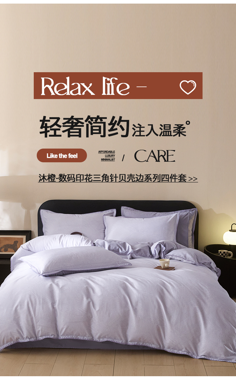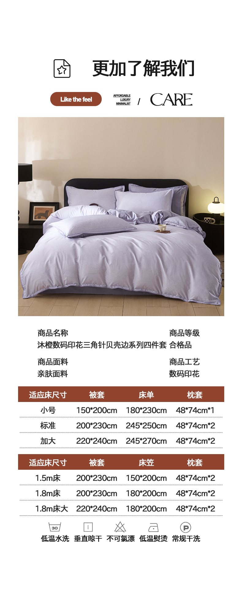 当前位置: 91家纺网 > 商品网购 > 床品套件 > 四件套 > 其它四件套 > 置顶家纺 2026新款数码印花三角针贝壳边四件套-沐橙 沐橙-香芋紫