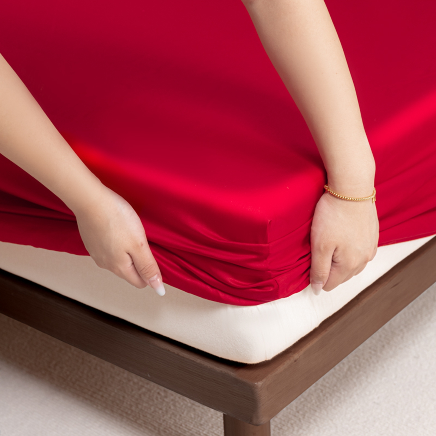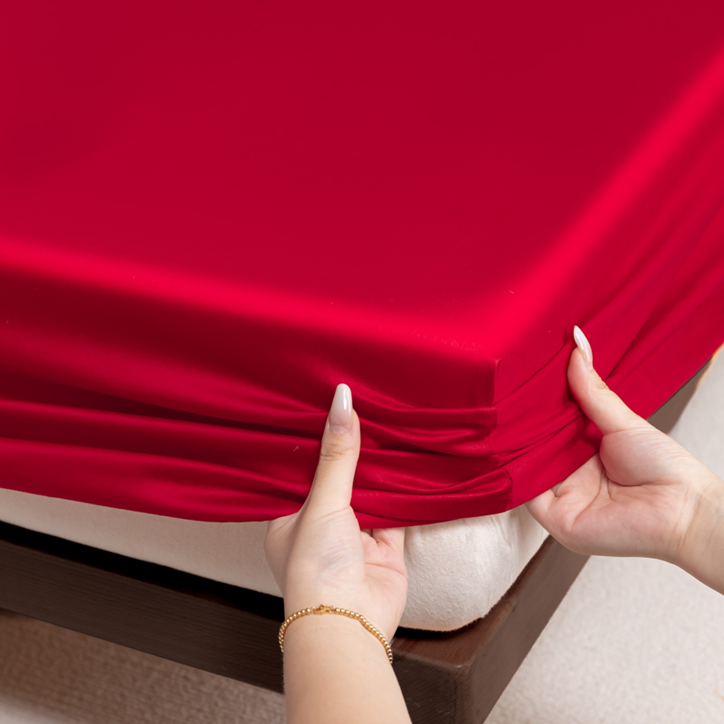秀色家纺 2026新款高端Pro+全棉纯棉床笠三件套纯棉床垫保护套简约纯色床套防尘罩单件 梦易-海棠红