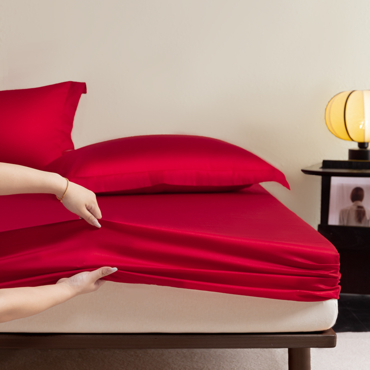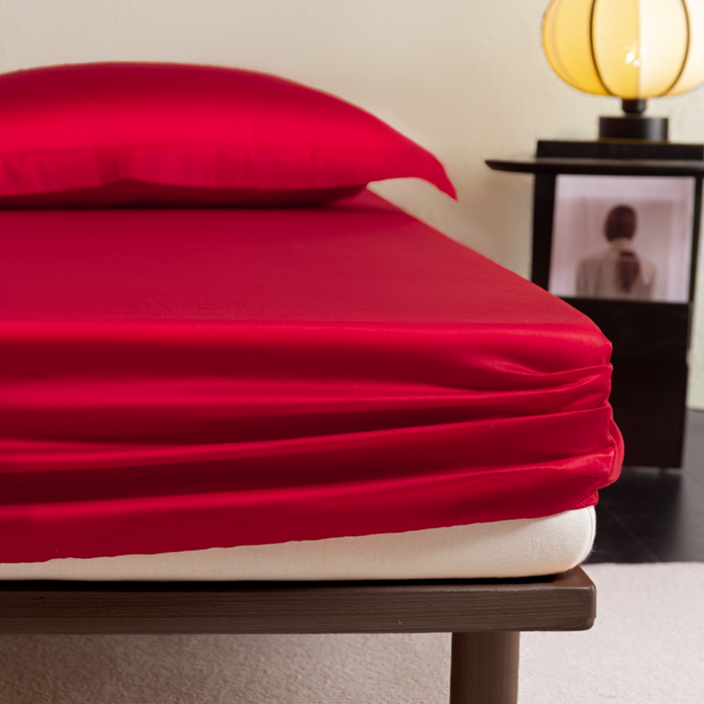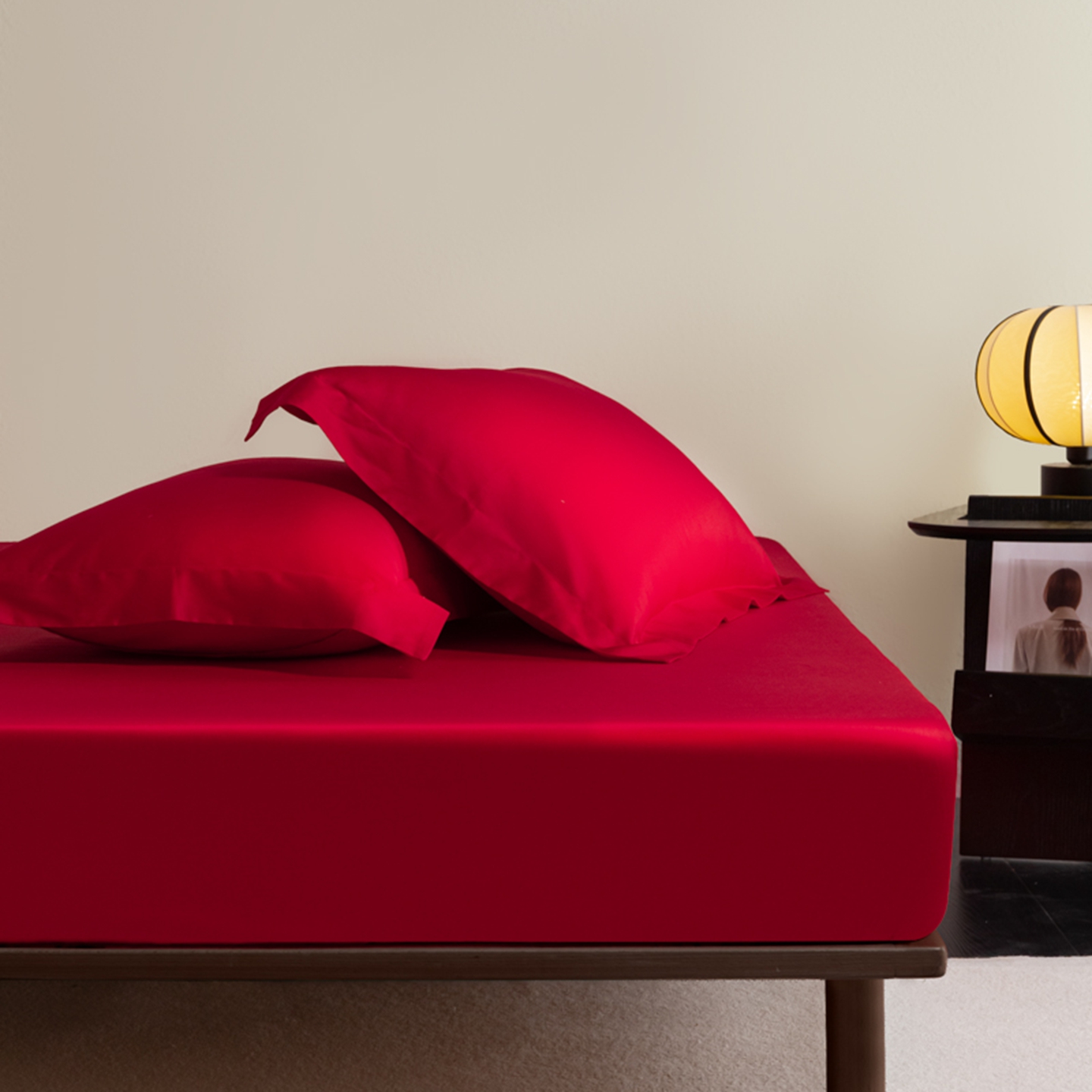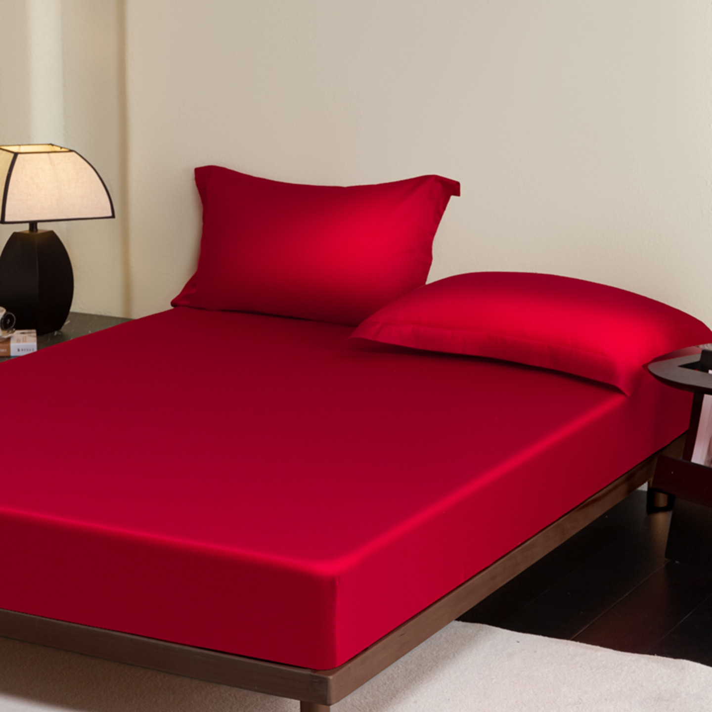 商品名称:秀色家纺 2026新款高端Pro+全棉纯棉床笠三件套纯棉床垫保护套简约纯色床套防尘罩单件 梦易-海棠红