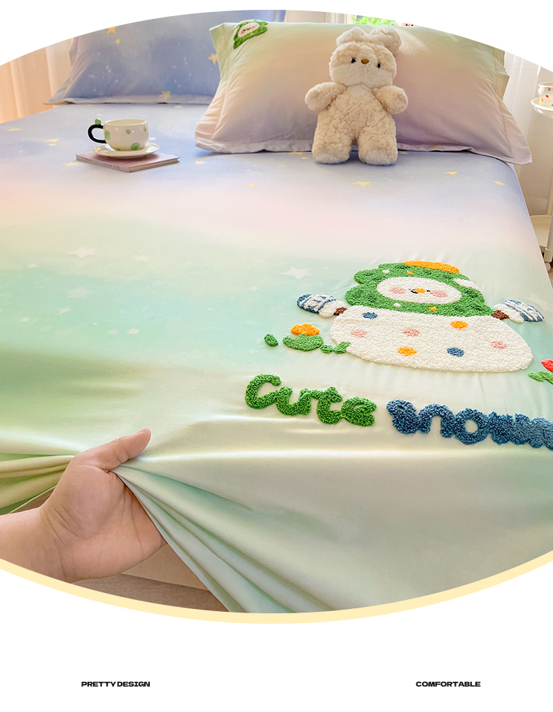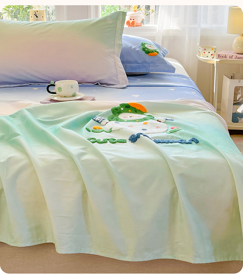笙意家纺 2026新款50S全棉纯棉毛巾绣单品床单床单单件 星野雪人