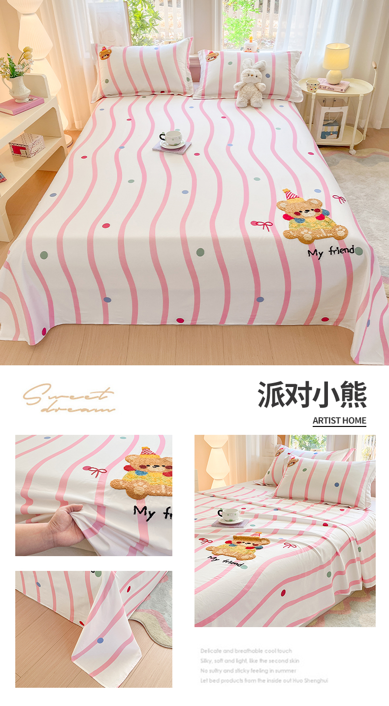 (总)笙意家纺 2026新款50S全棉纯棉毛巾绣单品床单床单单件,粉豹纹喵,复古格犬,海盐萌宠,派对小熊,甜心kt,雾蓝小兔,星甜狐兔,星野雪人,星云萌犬