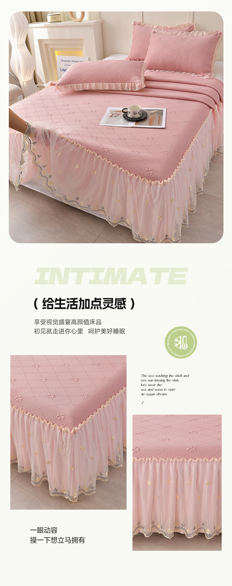 商品名称:畅畅家纺 2026新款网红爆款夏季立体爱心冰豆豆凉席床裙款三件套 爱心-豆沙粉