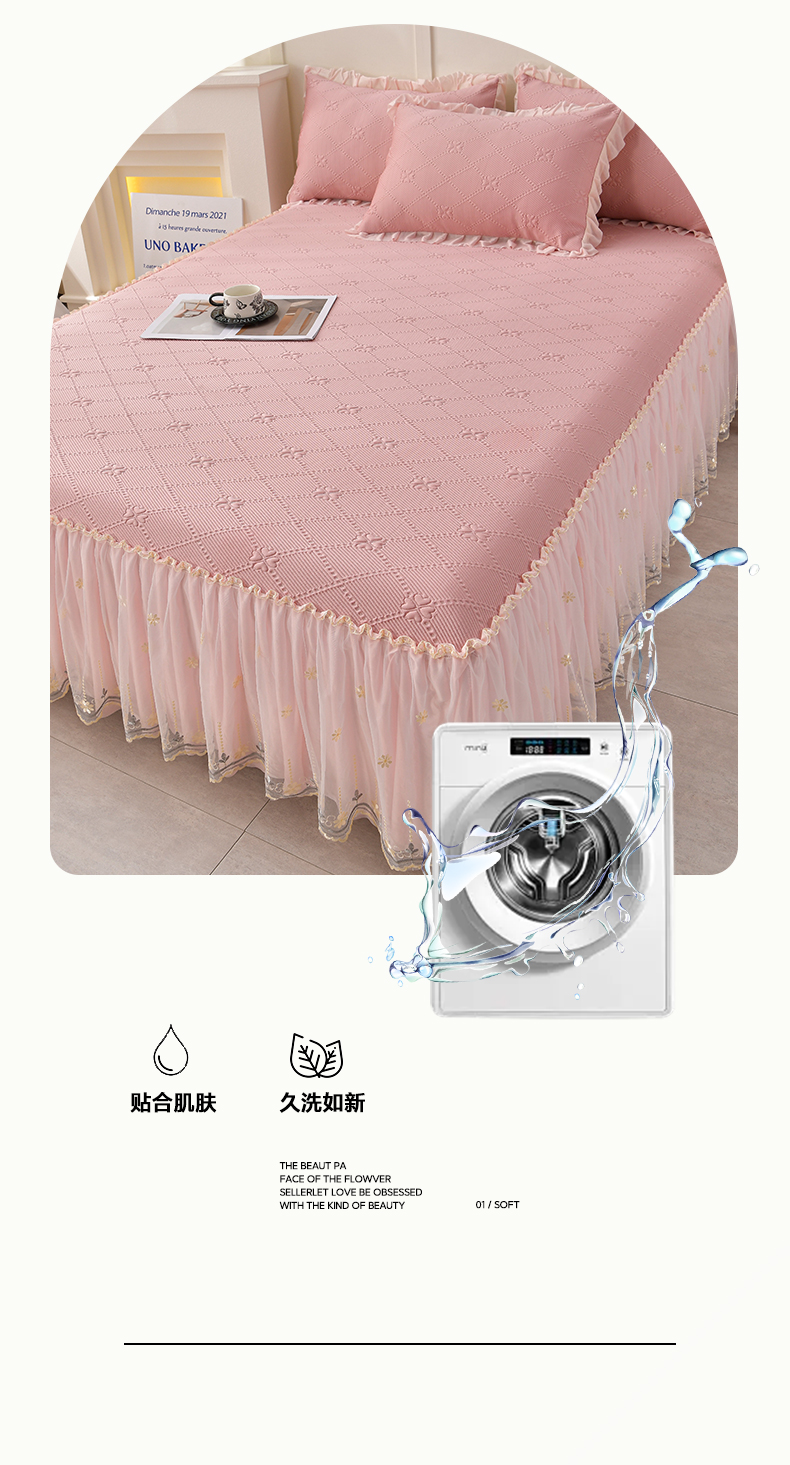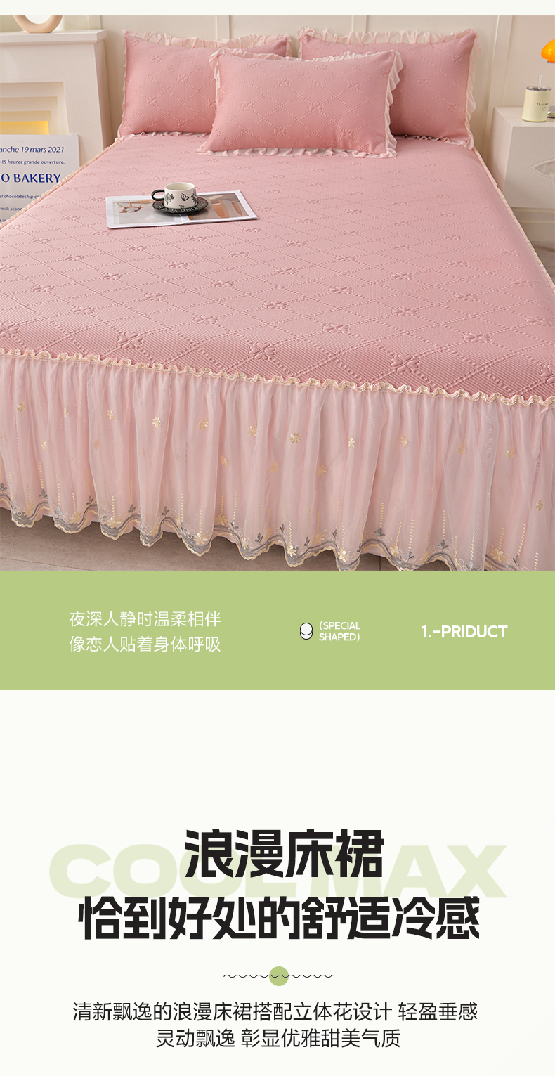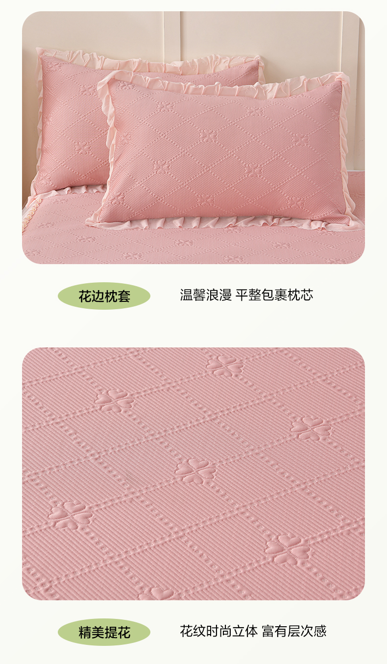 (总)畅畅家纺 2026春夏新款聚乙烯中分子双面提花高克重凉感冰感凉豆豆床裙三件套-经典玫瑰,经典玫瑰-粉,经典玫瑰-灰,经典玫瑰-蓝,经典玫瑰-绿