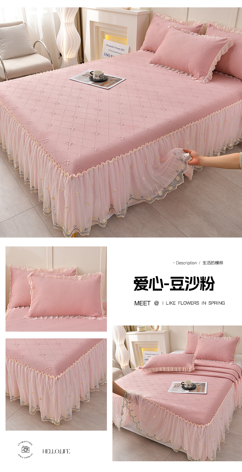 (总)畅畅家纺 2026新款网红爆款夏季立体爱心冰豆豆凉席床裙款三件套,爱心-豆沙粉,爱心-咖,爱心-浅绿,爱心-苹果绿,爱心-蓝,爱心-灰