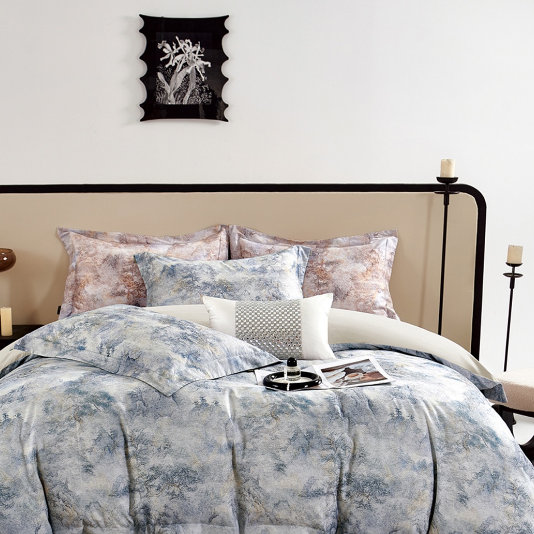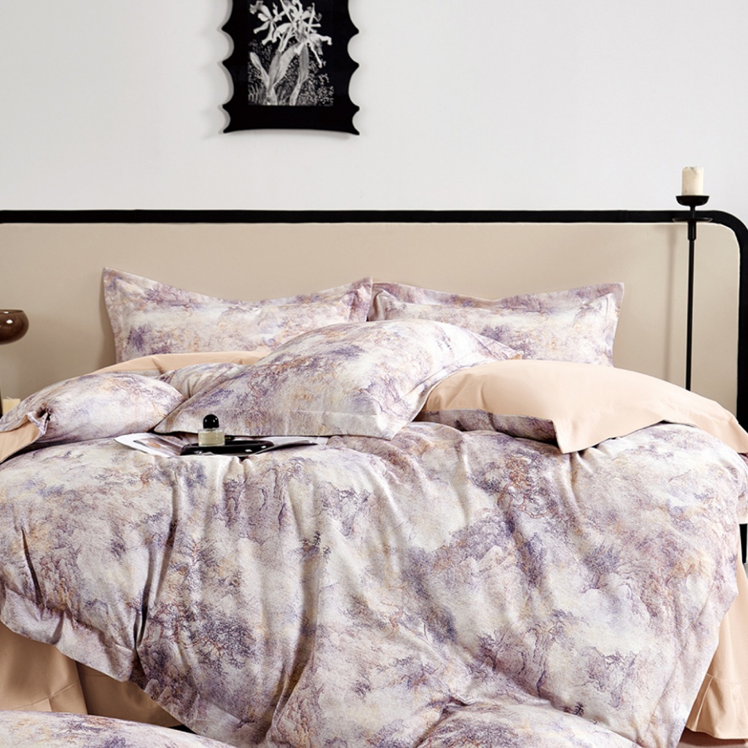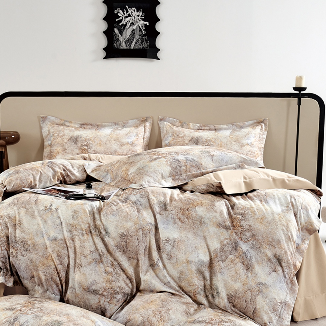(总)芯丝路家纺 2026新款进口天丝棉印花四件套(双拼角工艺款),风吟-棕,逢春-咖,梦梵-驼,秘境-灰绿,秘境-紫,水墨竹叶-灰绿,水墨竹叶-深咖