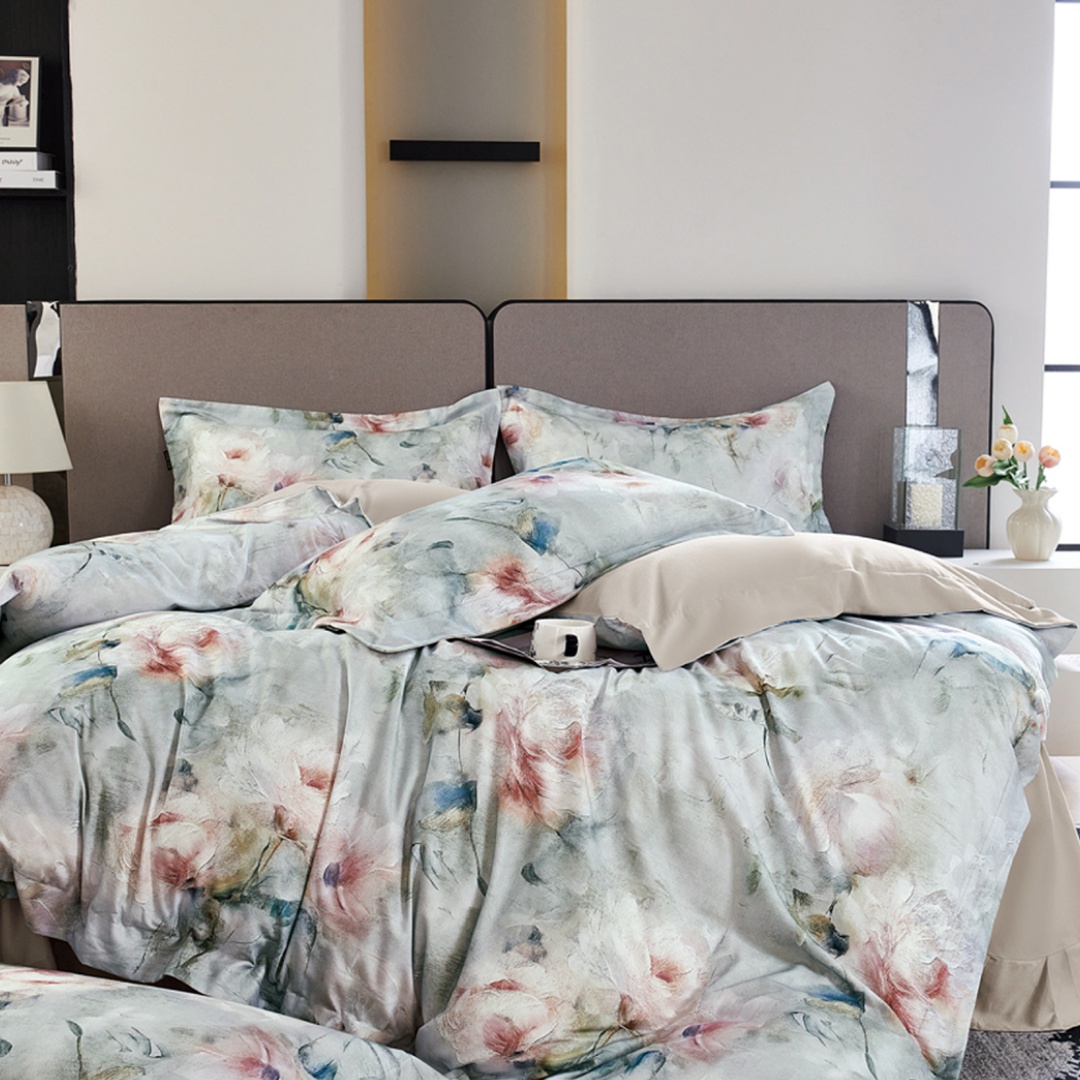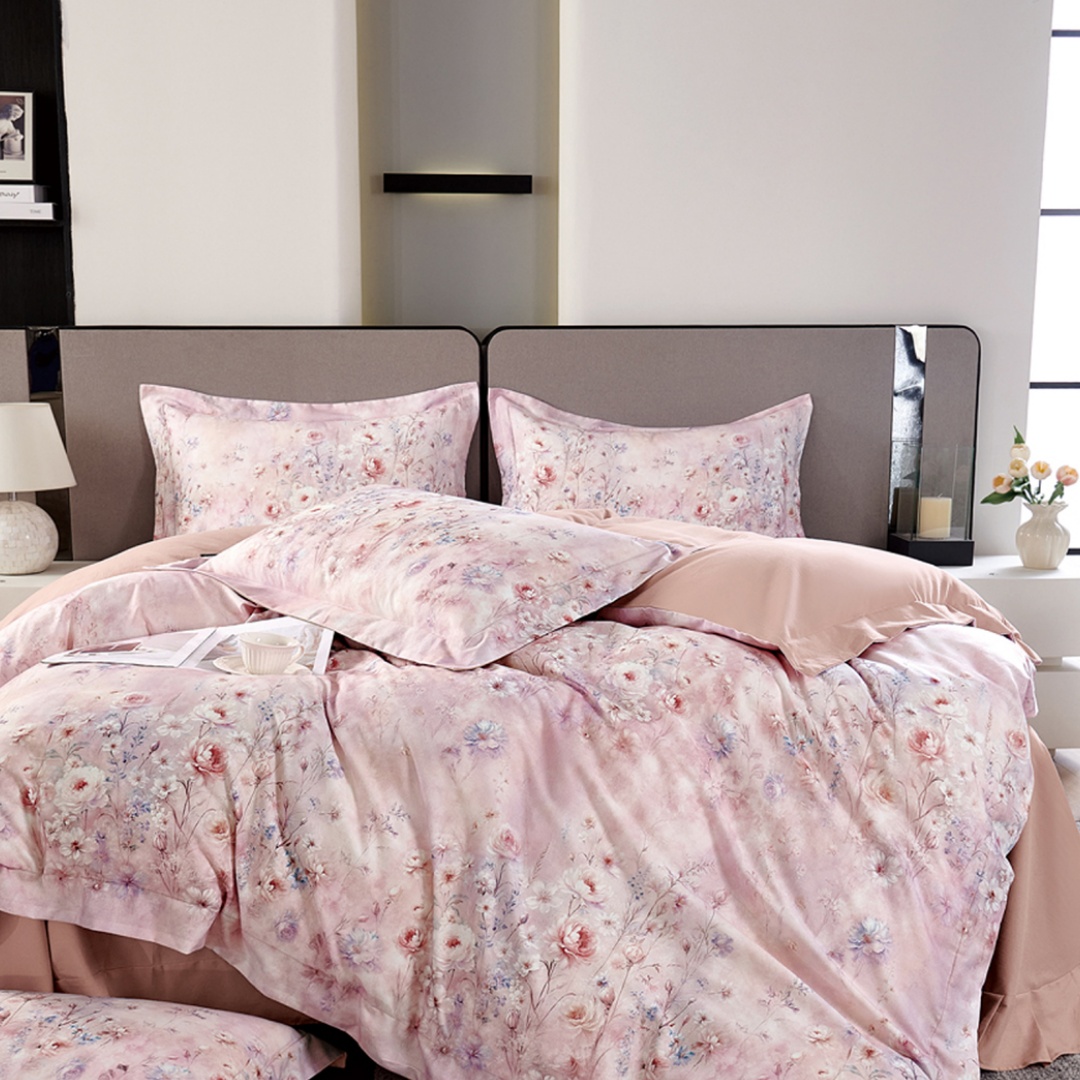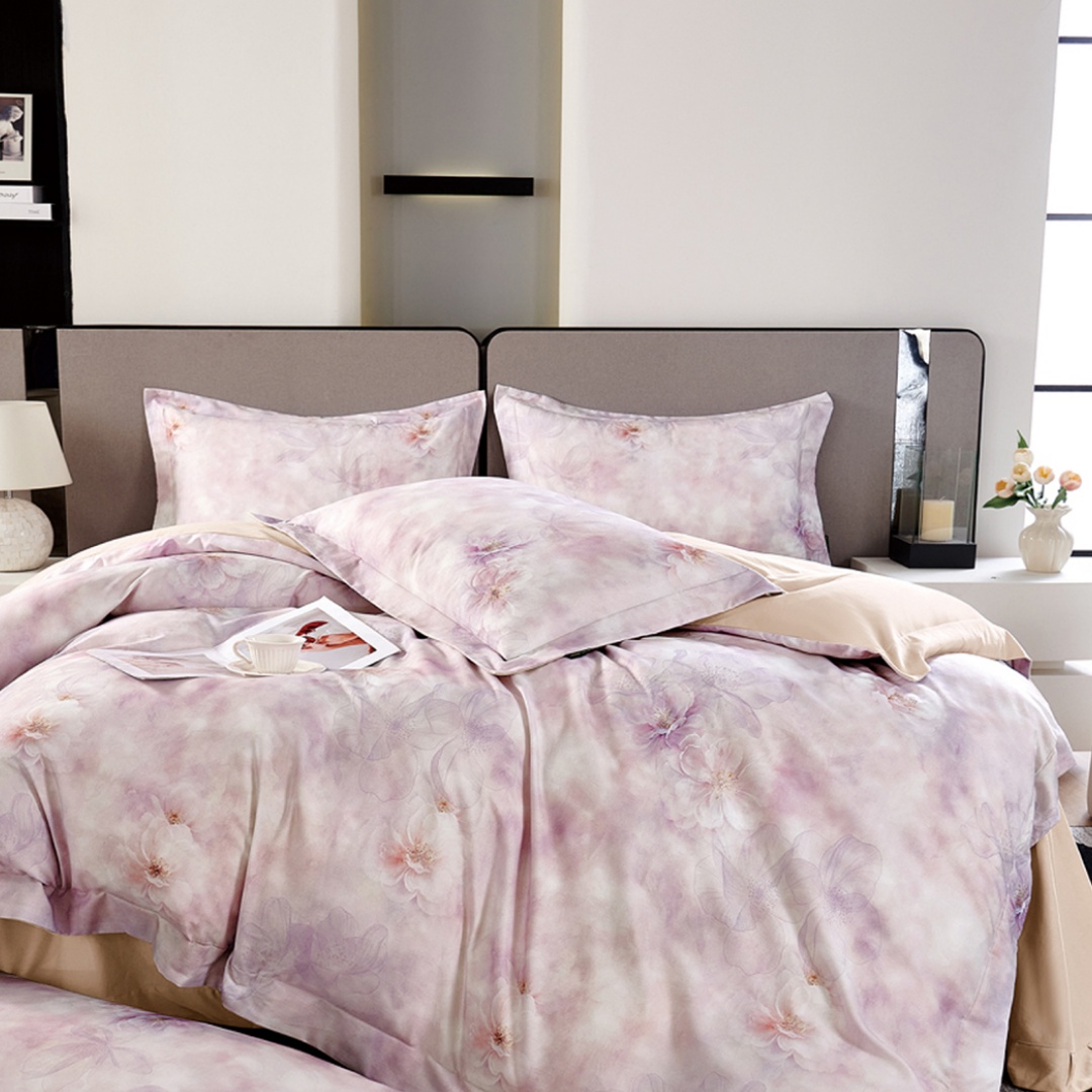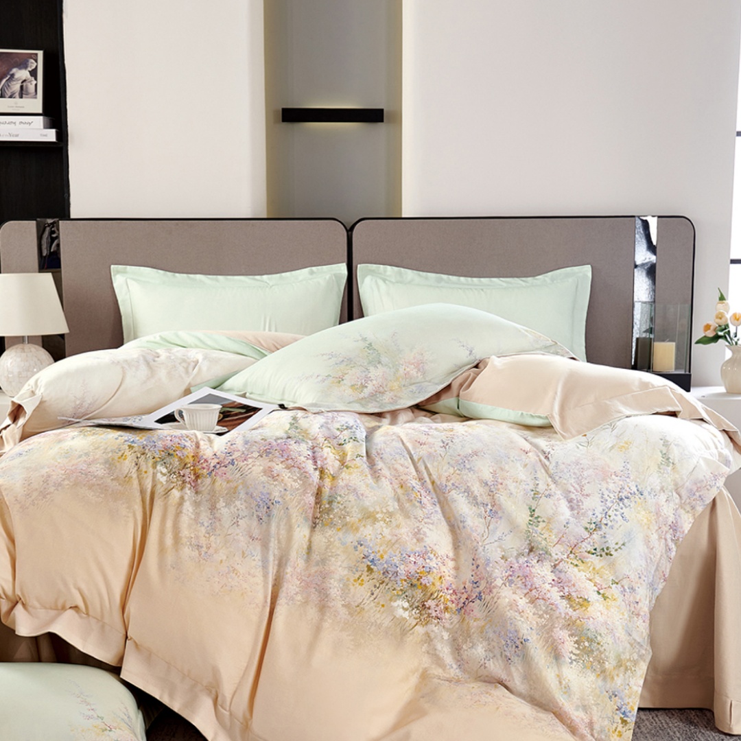 (总)芯丝路家纺 2026新款天丝棉数码印花四件套(双拼角工艺款),繁花,浮生,花韵,雅梦,玉锦,竹野