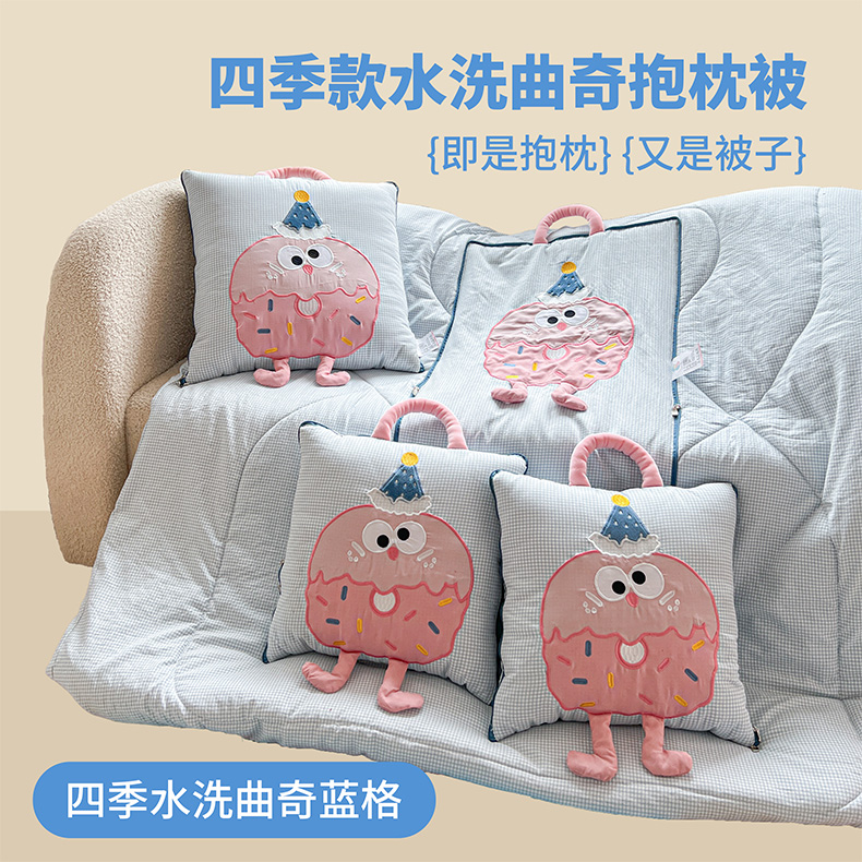 (总)古本家居 2026新款四季款水洗曲奇抱枕被,四季水洗曲奇粉格,四季水洗曲奇蓝格
