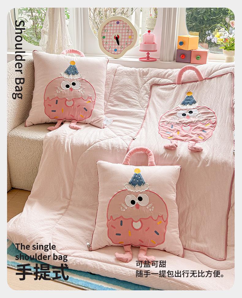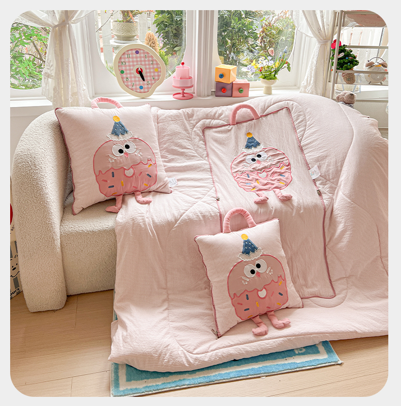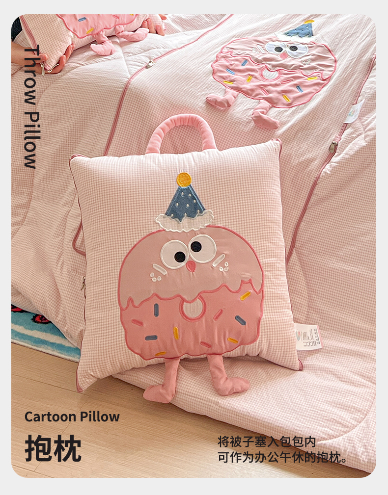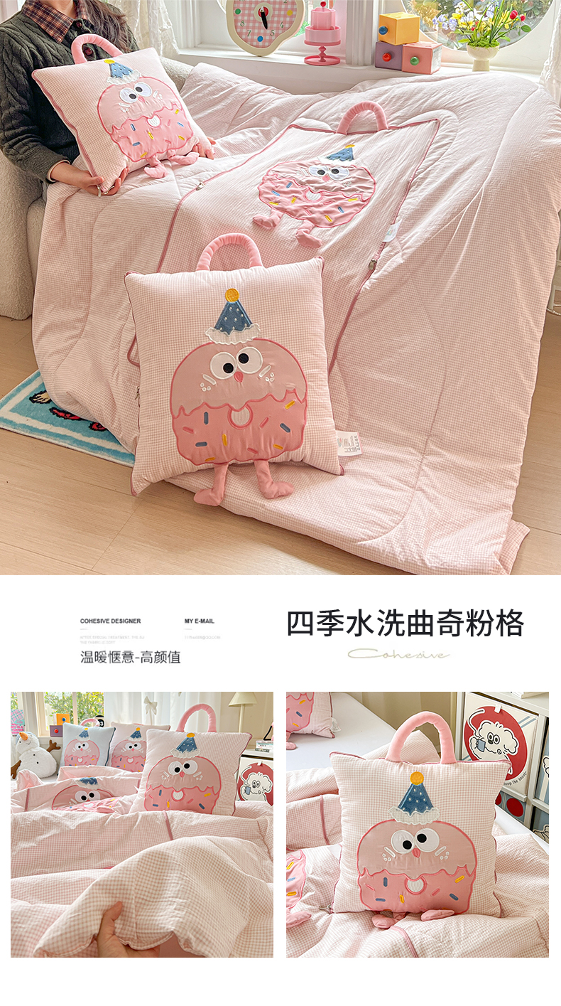 (总)古本家居 2026新款四季款水洗小星人抱枕被,四季小星人绿格,四季小星人粉格,四季小星人黄格,四季小星人蓝格