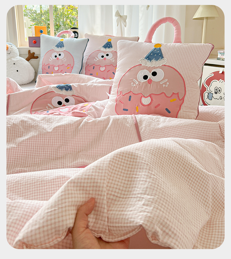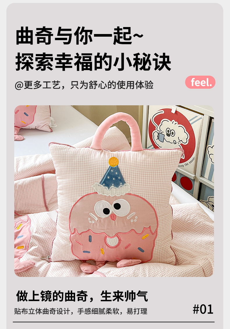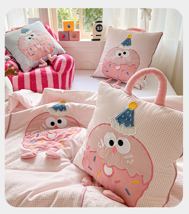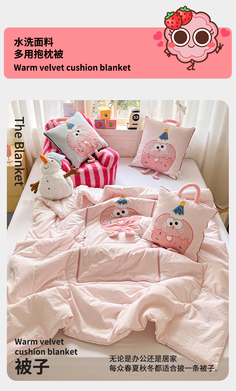 (总)古本家居 2026新款四季款水洗小星人抱枕被,四季小星人绿格,四季小星人粉格,四季小星人黄格,四季小星人蓝格