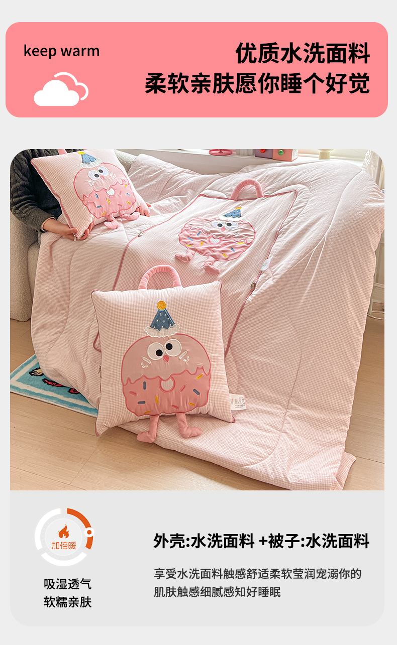 商品名称:(总)古本家居 2026新款四季款水洗曲奇抱枕被
