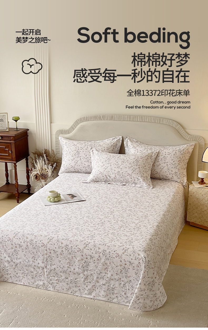 宝齐莱家纺 2026新款全棉纯棉13372印花单床单床单单件 烟花间