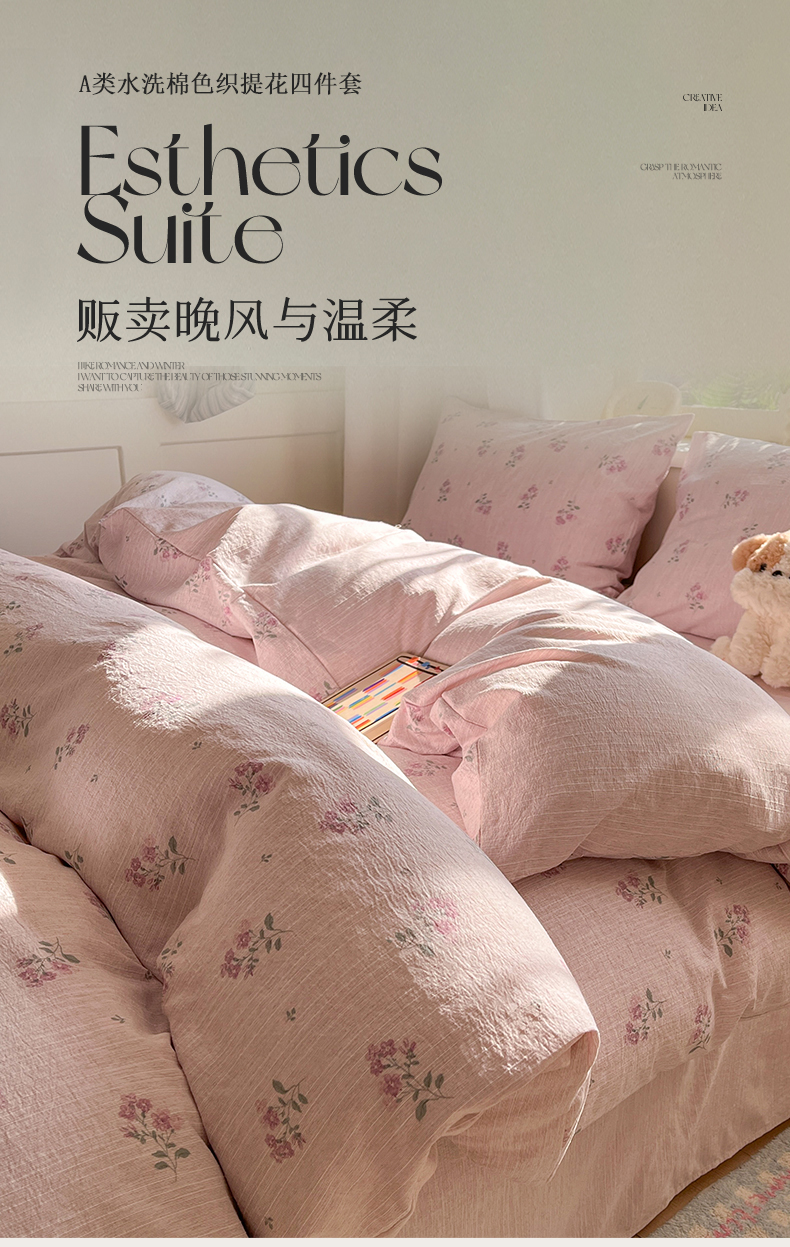 当前位置: 91家纺网 > 商品网购 > 床品套件 > 四件套 > 其它四件套 > 盛秋家纺 2026春夏新款亲肤舒适色织四件套-洛基系列 云溪+玫瑰粉