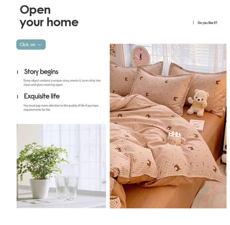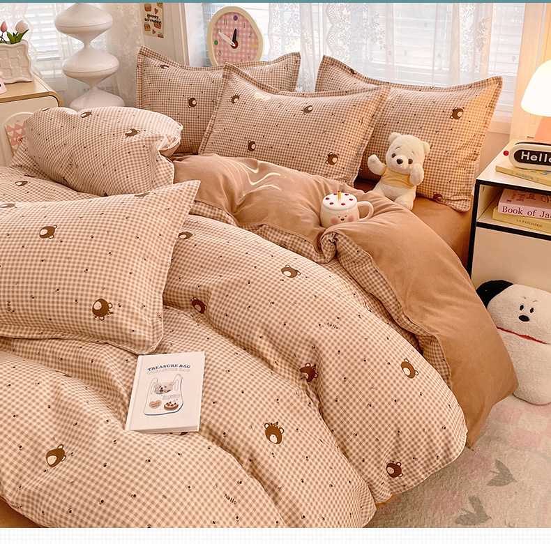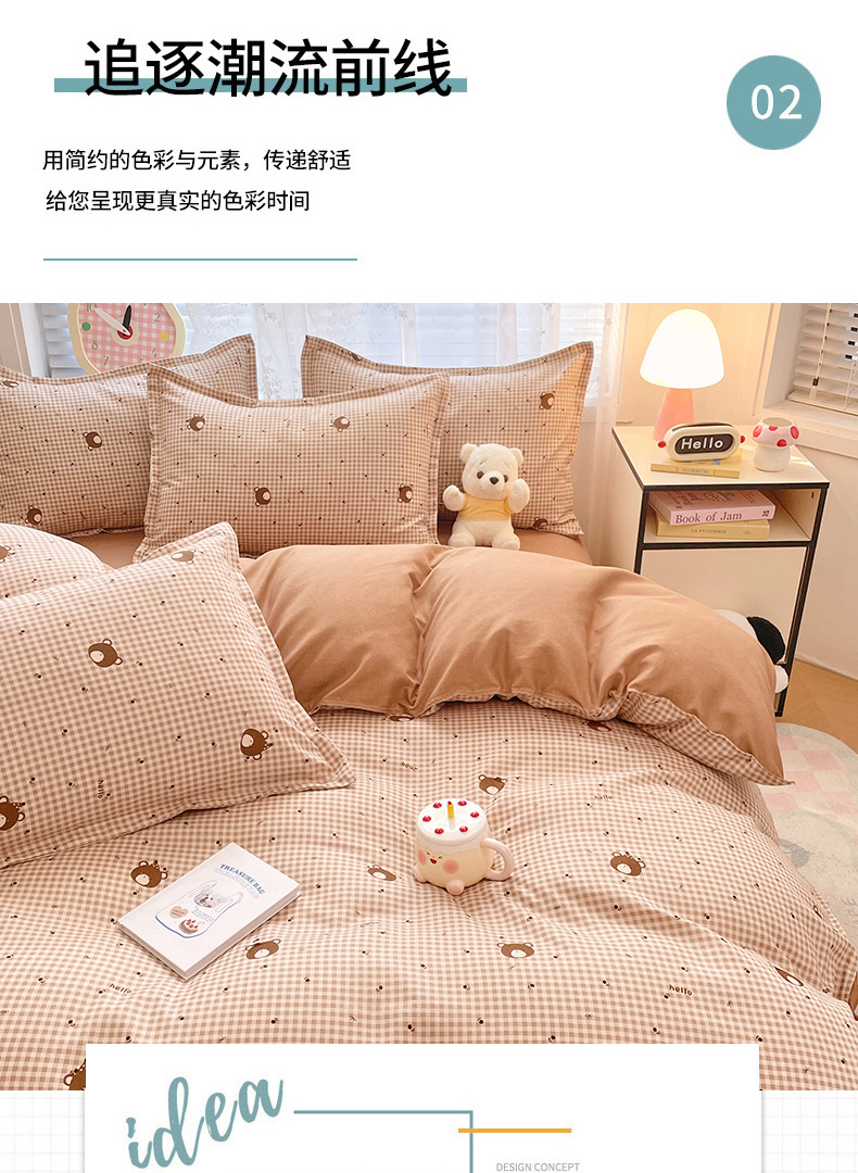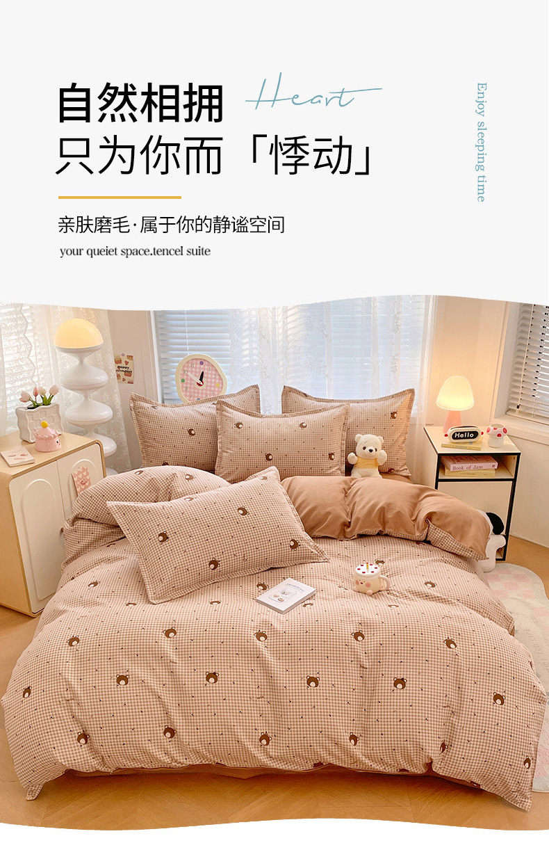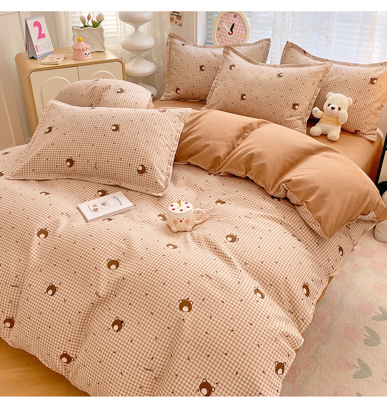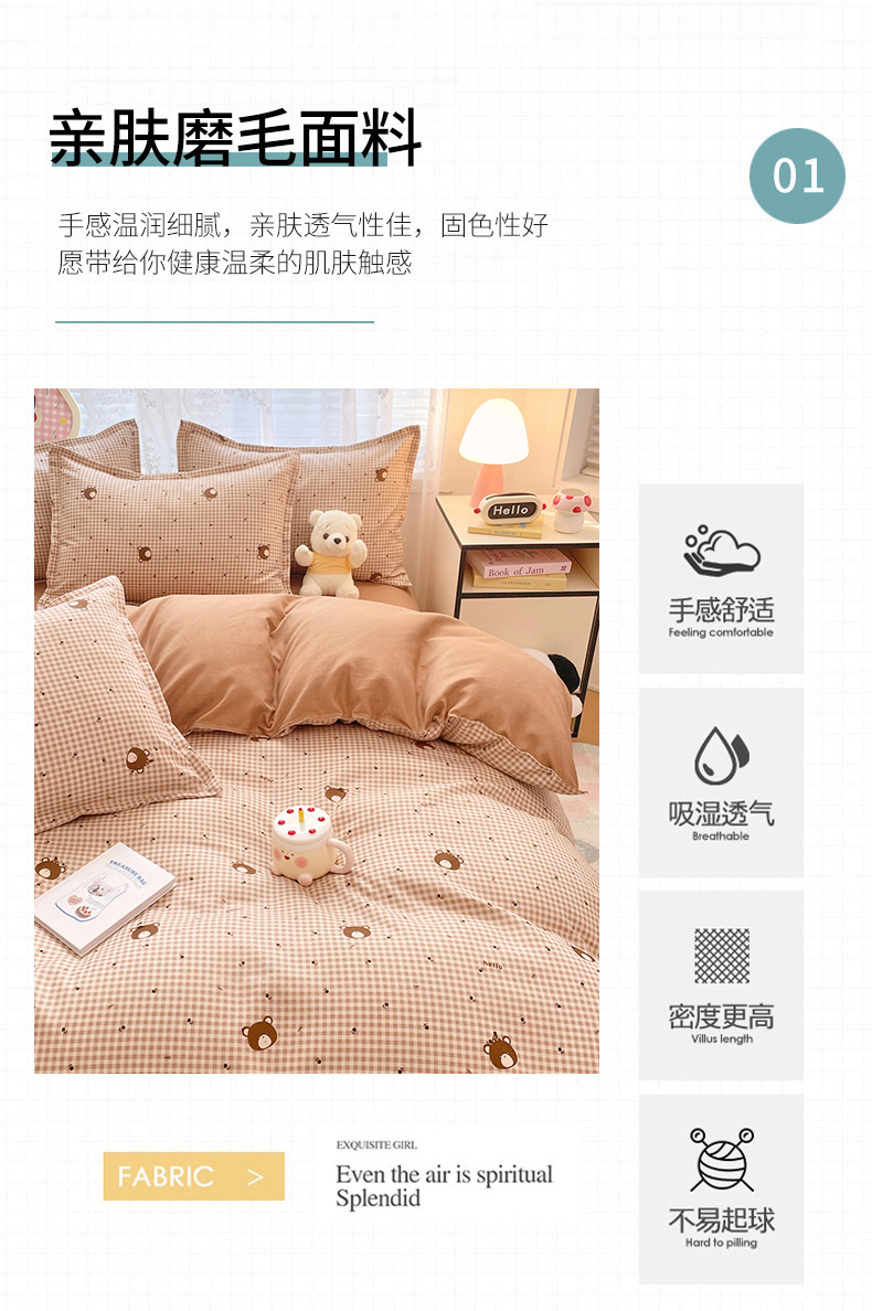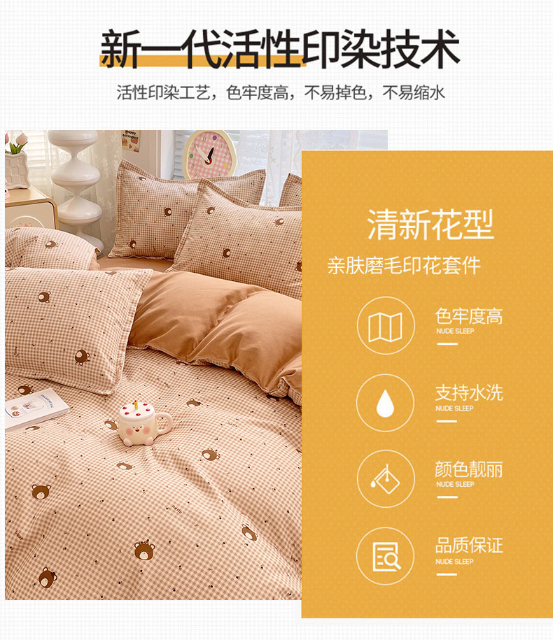 商品名称:世爵 2026春夏新款亲肤磨毛印花四件套 熊仔格