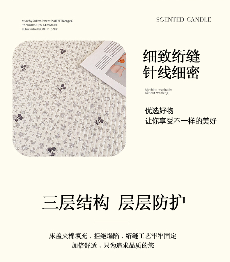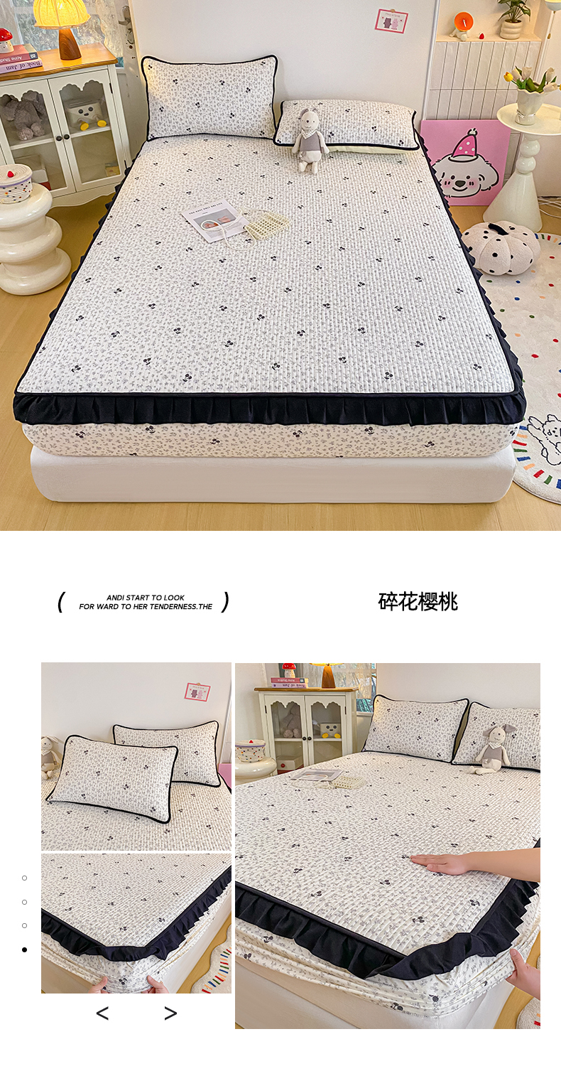 • 91家纺网 家纺一手货源 找家纺 欣宜家纺 2026新款花边全棉纯棉印花夹棉床笠床垫保护套罩 碎花樱桃