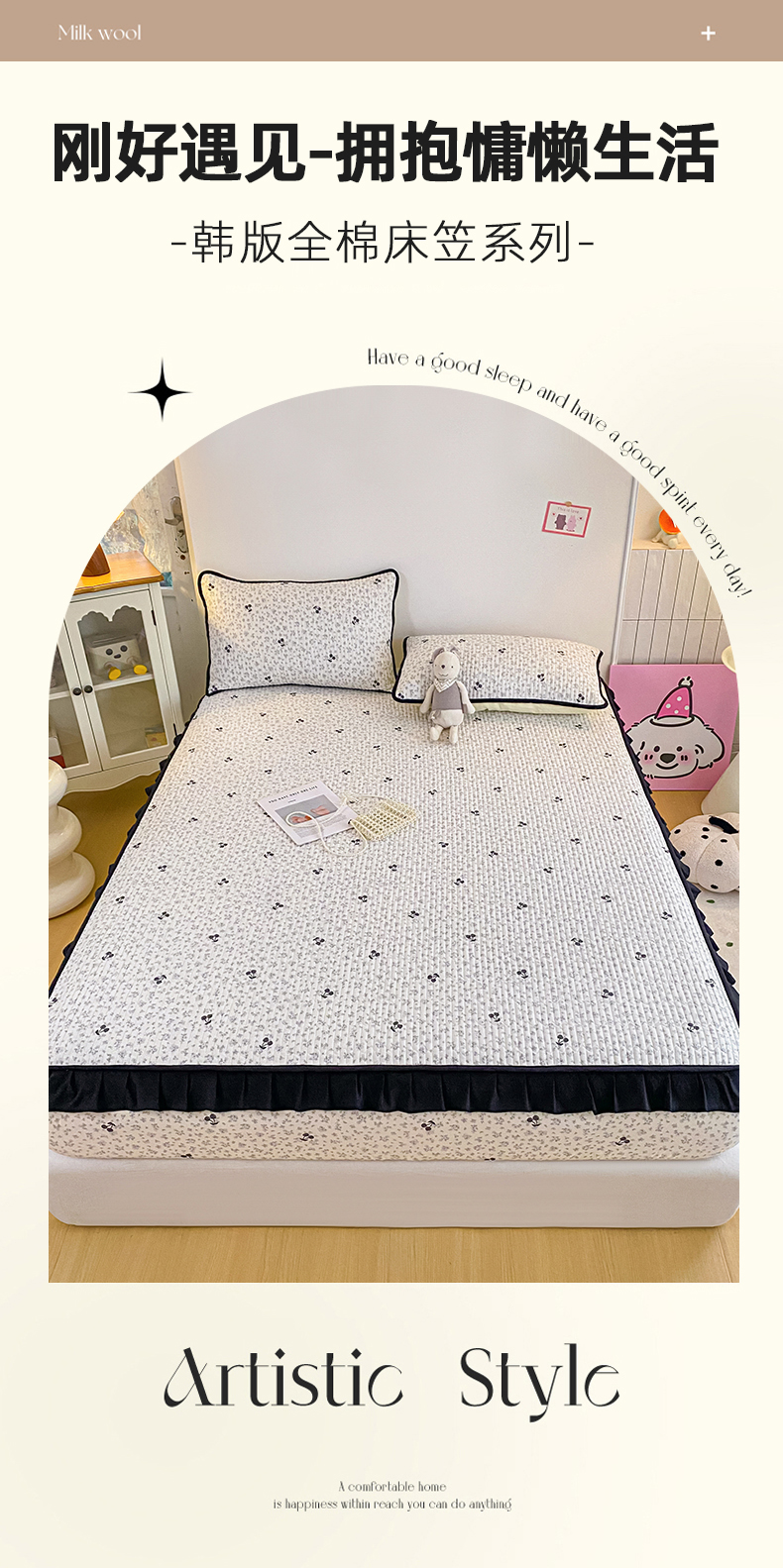 • 91家纺网 家纺一手货源 找家纺 (总)欣宜家纺 2026新款花边全棉纯棉印花夹棉床笠床垫保护套罩,艾米丽,波点,花田粉,花田绿,花田紫,泡泡星人,碎花兔兔,碎花樱桃,童年