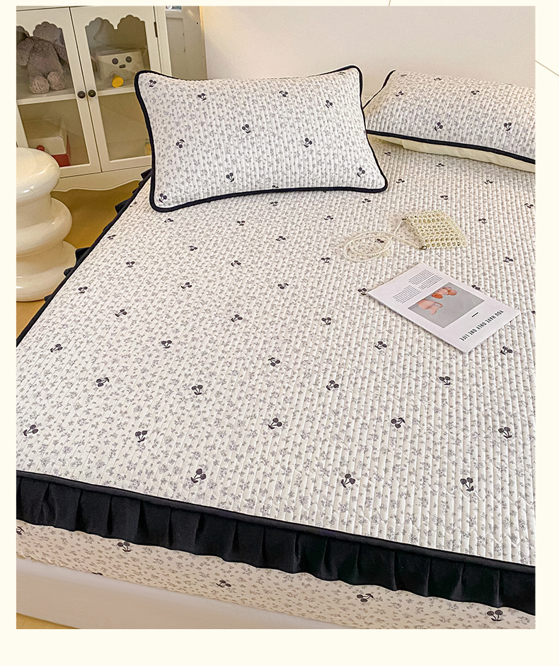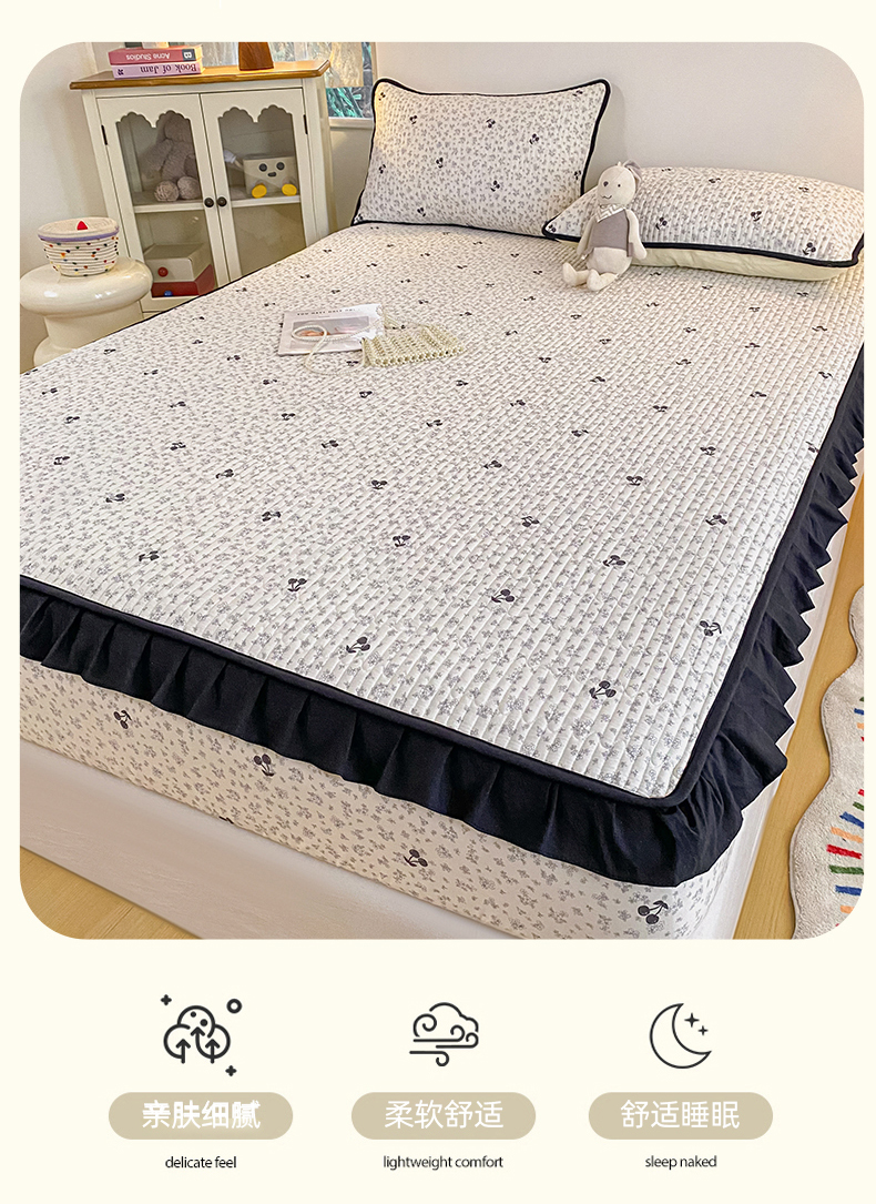 欣宜家纺 2026新款花边全棉纯棉印花夹棉床笠床垫保护套罩 碎花樱桃