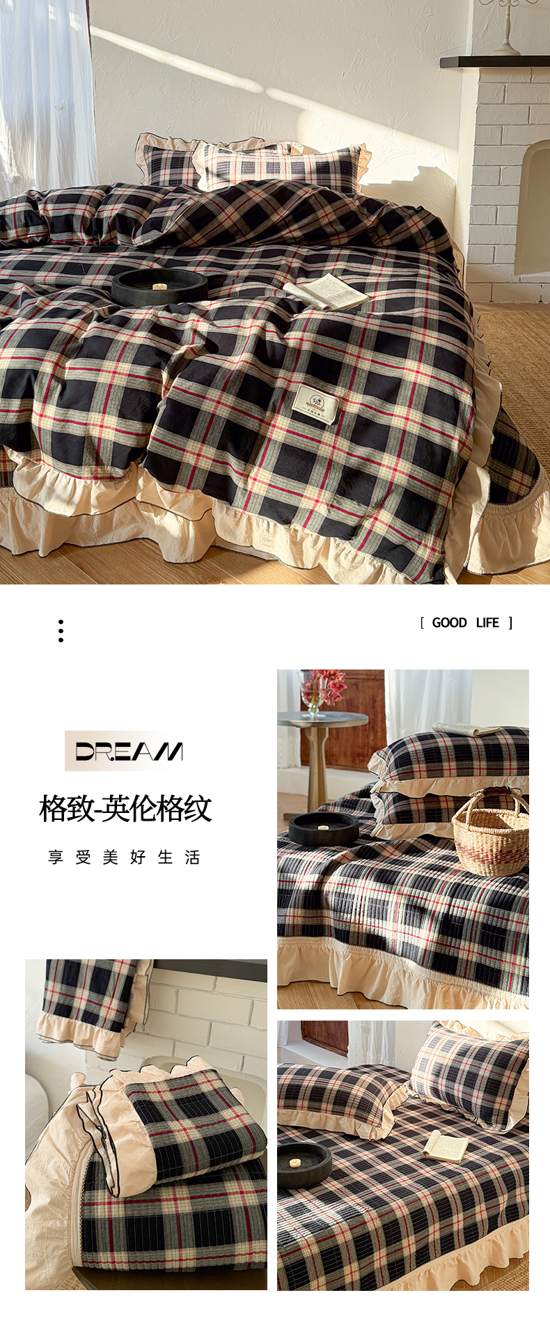 (总)欣宜家纺 2026新款全棉色织水洗棉床盖三件套,奥利奥格,海盐细格,焦糖拿铁,墨禾绿格,南法棕格,雾蓝格,新年红格,英伦格纹,芝士奶格,组合图仅供展示-不可下单