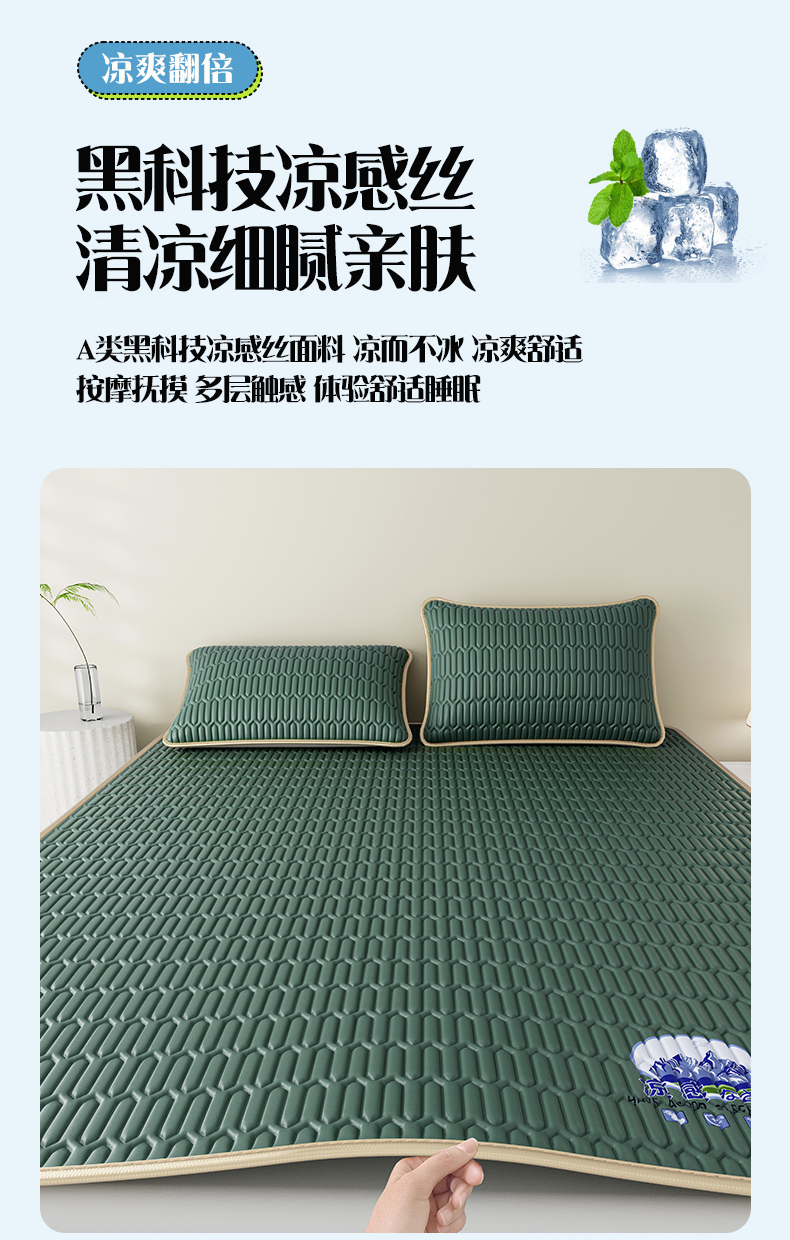 当前位置: 91家纺网 > 商品网购 > 床上用品 > 凉席 > 乳胶凉席 > 家品罗兰 2026新款夏季A类乳胶冰丝席纯色家用双人冰丝席宿舍席子软可机洗折叠床单软垫床垫夏天空调席两三件套 富士山-墨绿