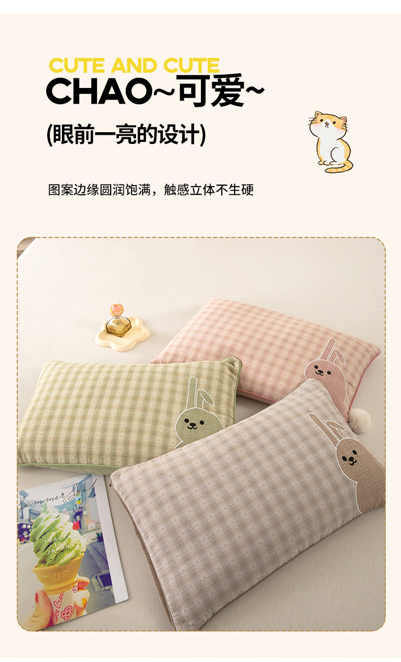 (总)枕之坊 2026新款全棉毛球兔子荞麦枕,毛球兔-粉色,毛球兔-咖色,毛球兔-绿色