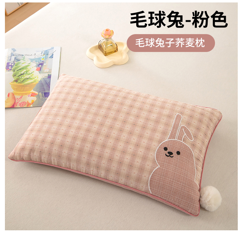 商品名称:枕之坊 2026新款全棉毛球兔子荞麦枕 毛球兔-粉色