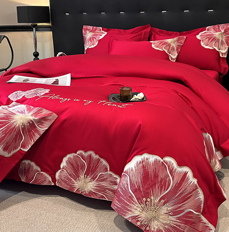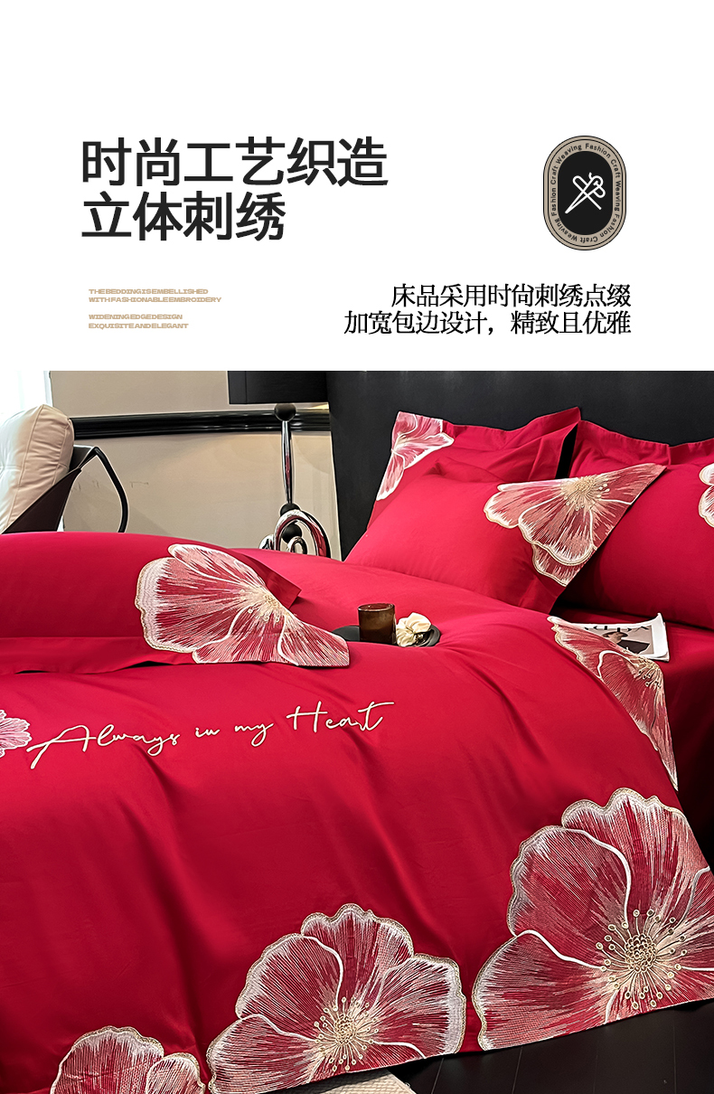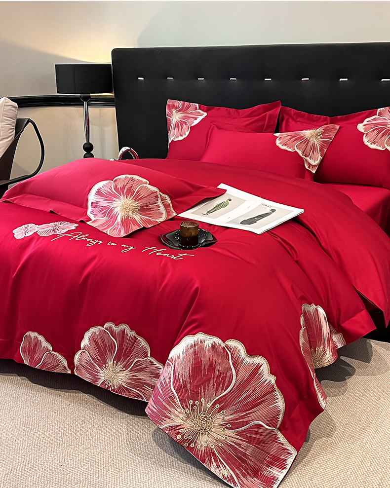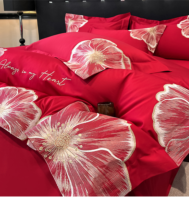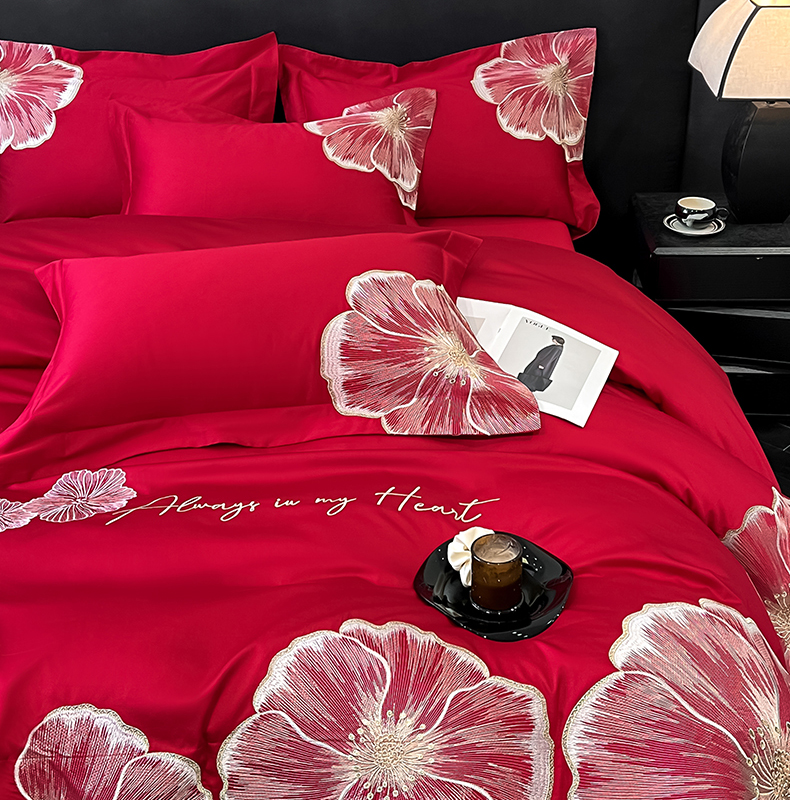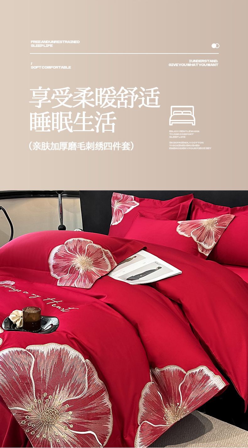 当前位置: 91家纺网 > 商品网购 > 床品套件 > 四件套 > 化纤普通四件套 > 置顶家纺 2026新款亲肤加厚磨毛刺绣四件套-花颜叶语 花颜叶语-大红