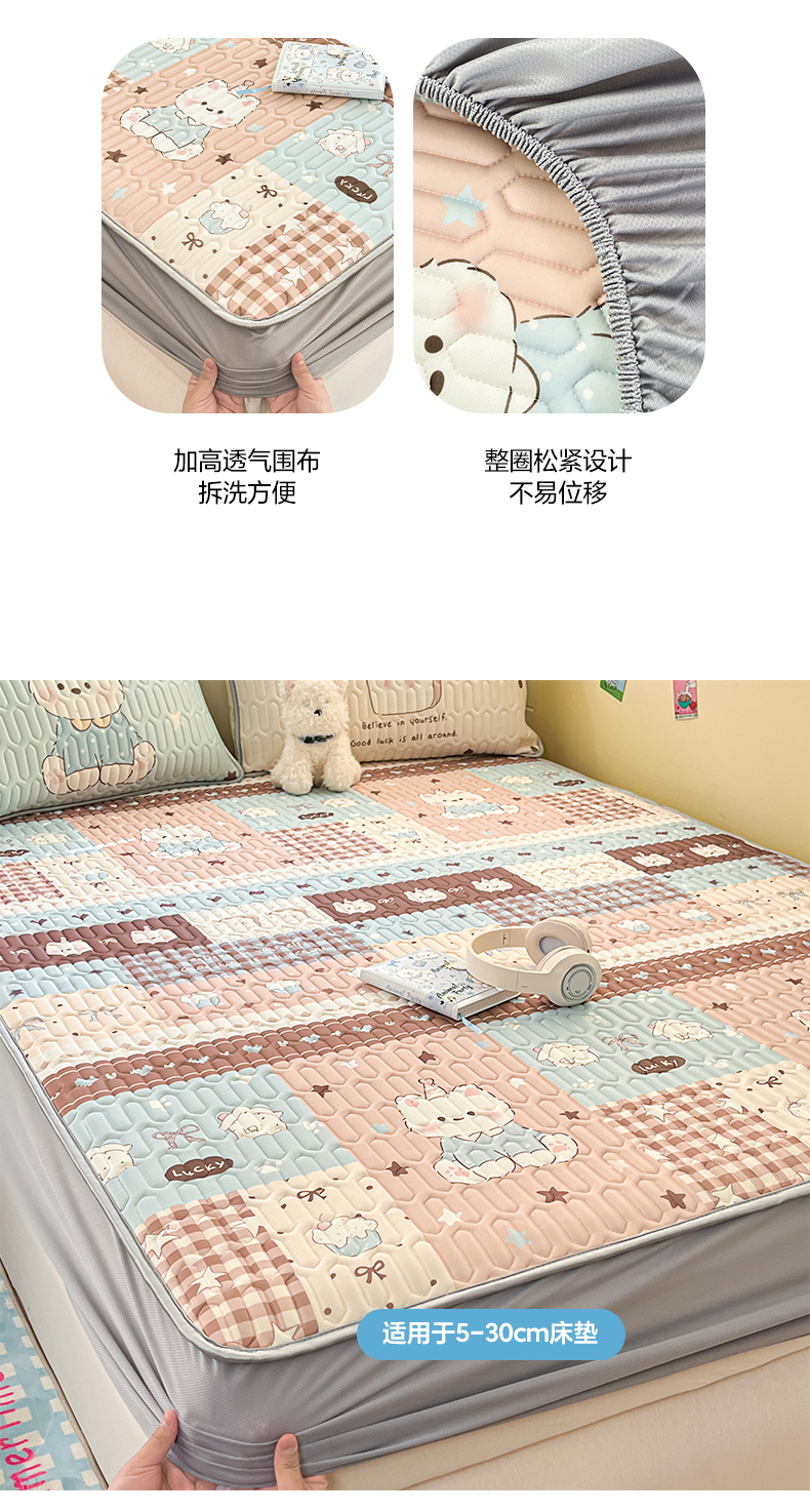 (总)摩妮卡 2026新款水洗棉夹棉防水床褥床垫款三件套,几何-卡其,几何-奶白,几何-浅粉,几何-天蓝