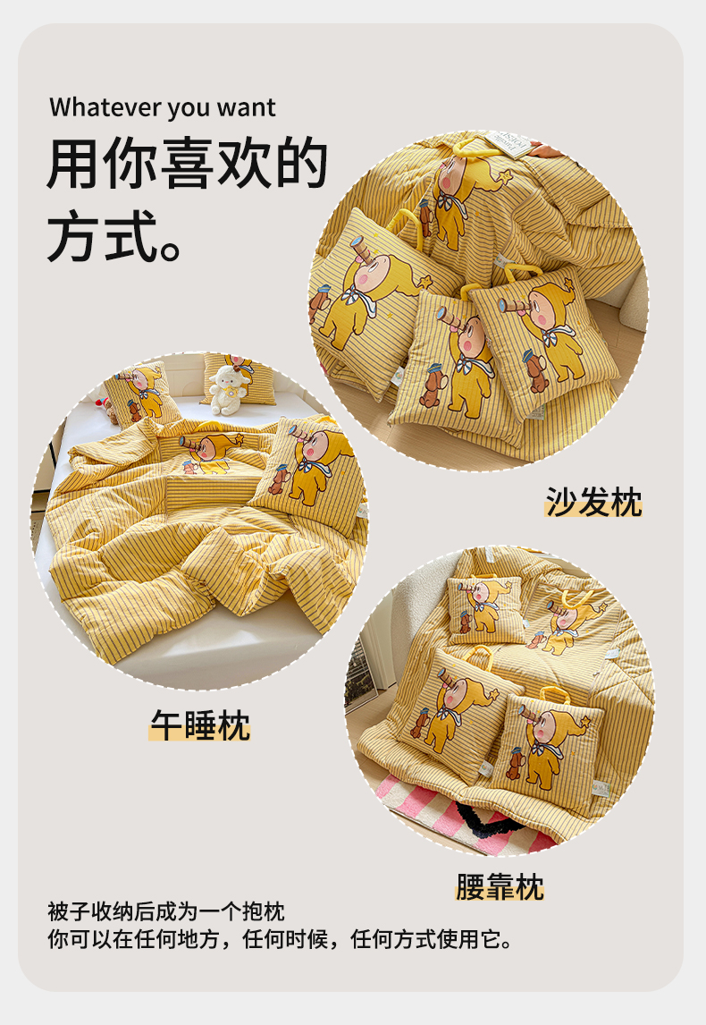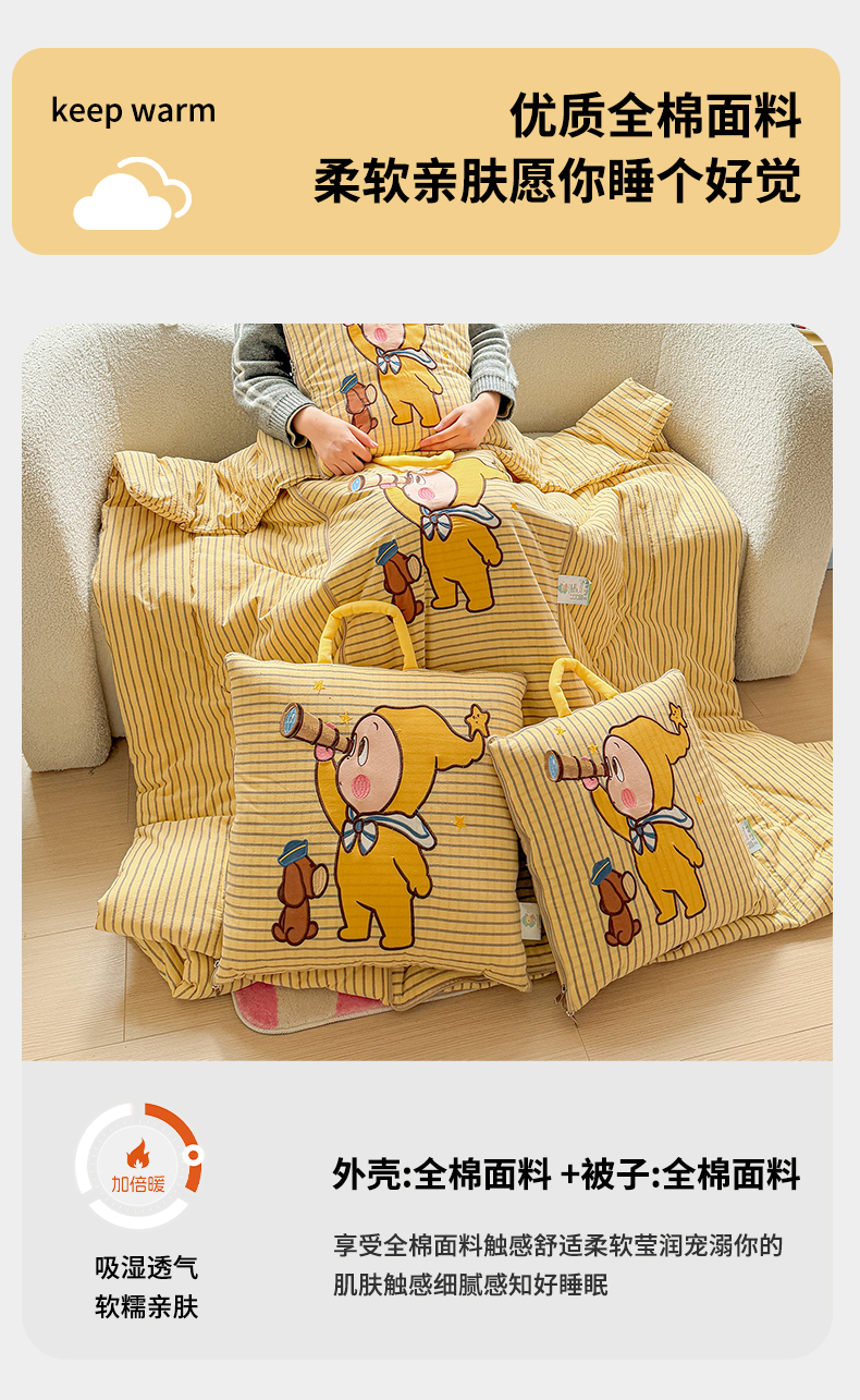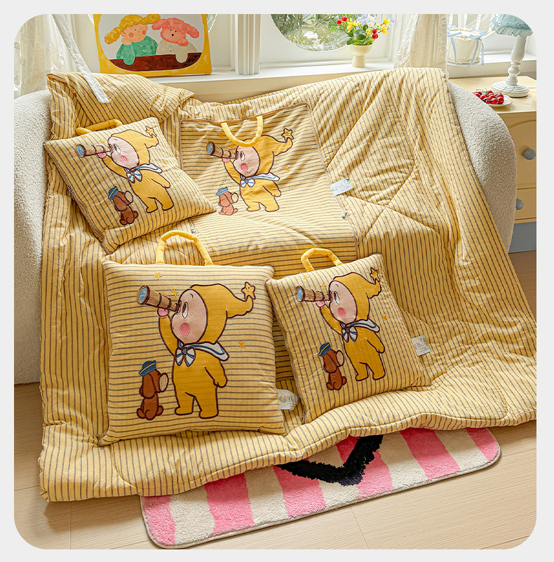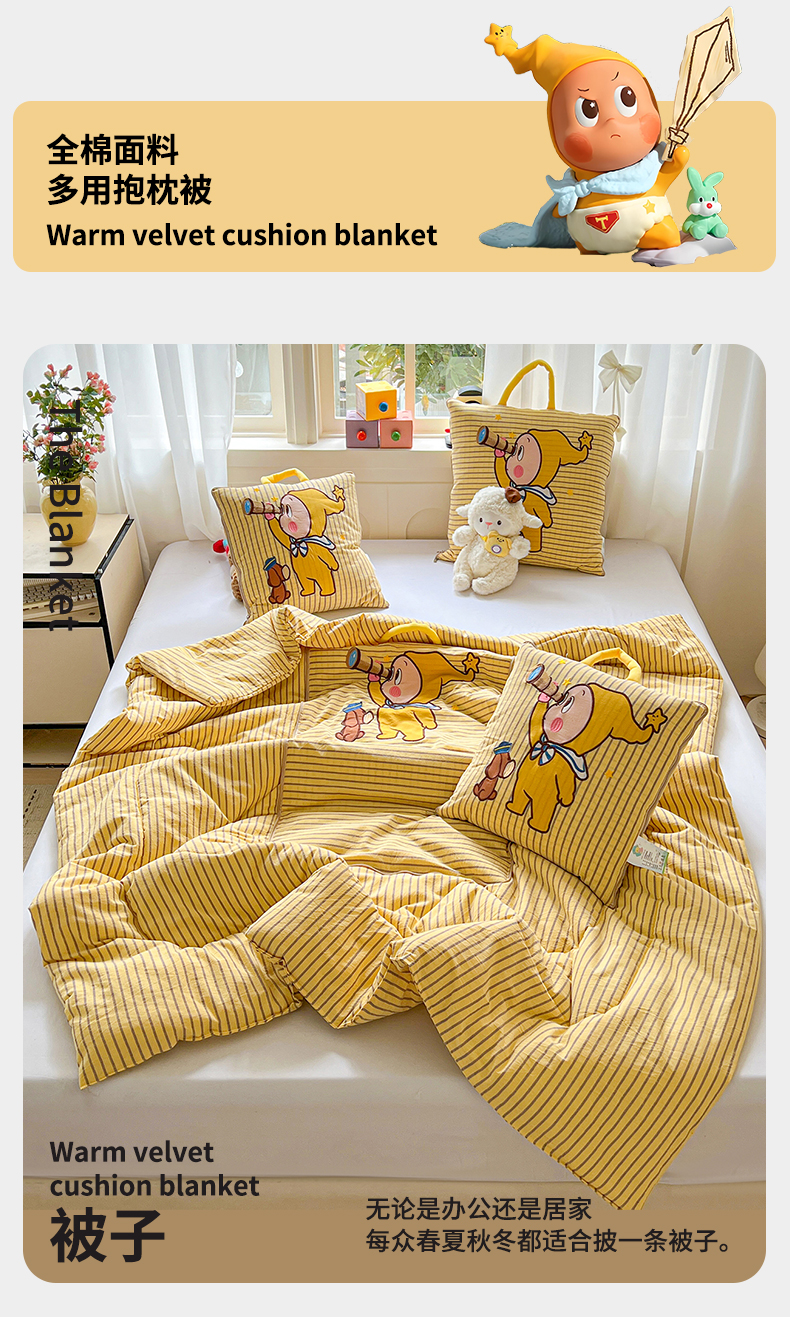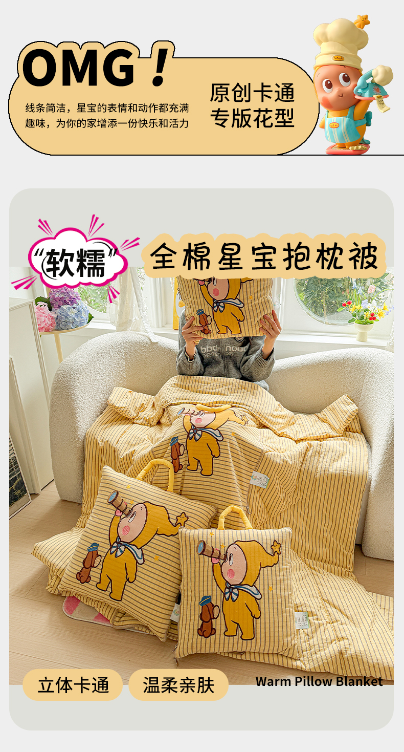 商品名称:古本家居 2026春夏新款全棉星宝系列抱枕被 全棉星宝黄条