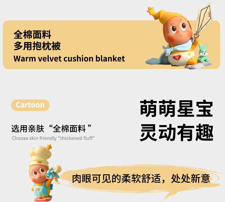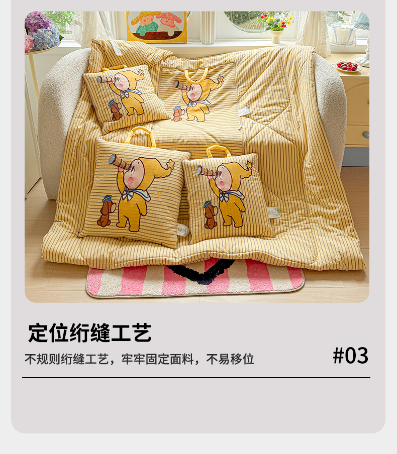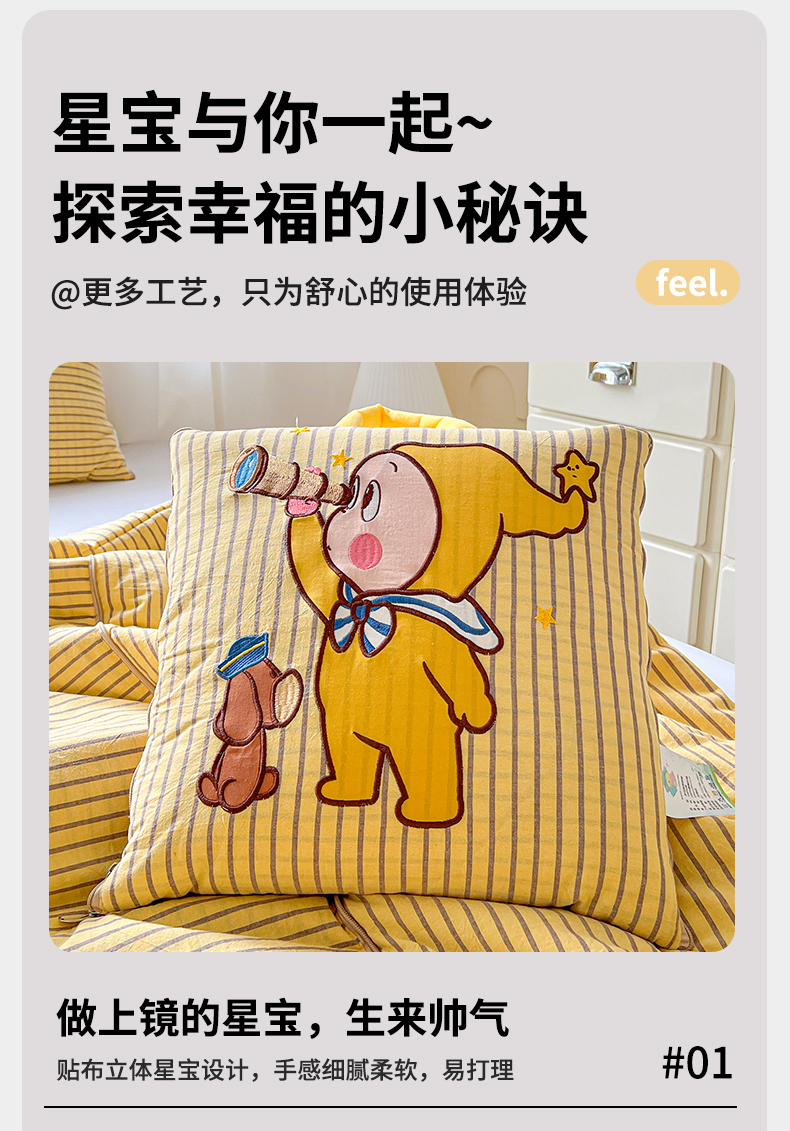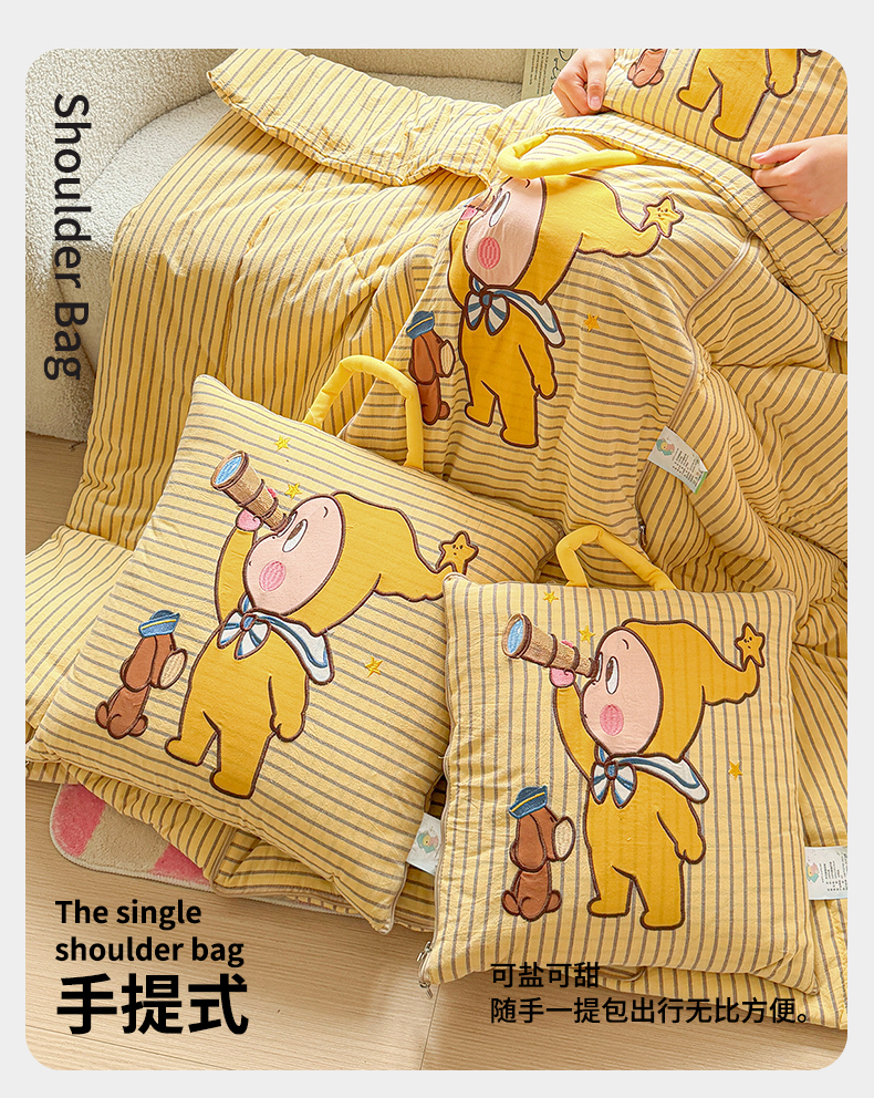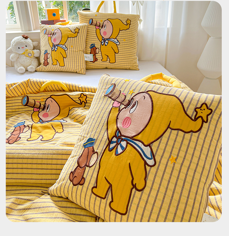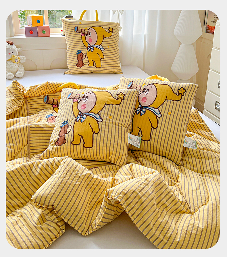 商品名称:古本家居 2026春夏新款全棉星宝系列抱枕被 全棉星宝黄条