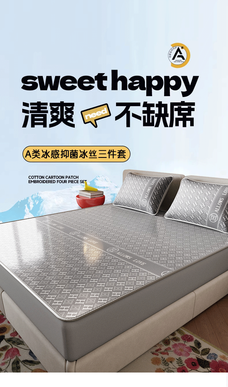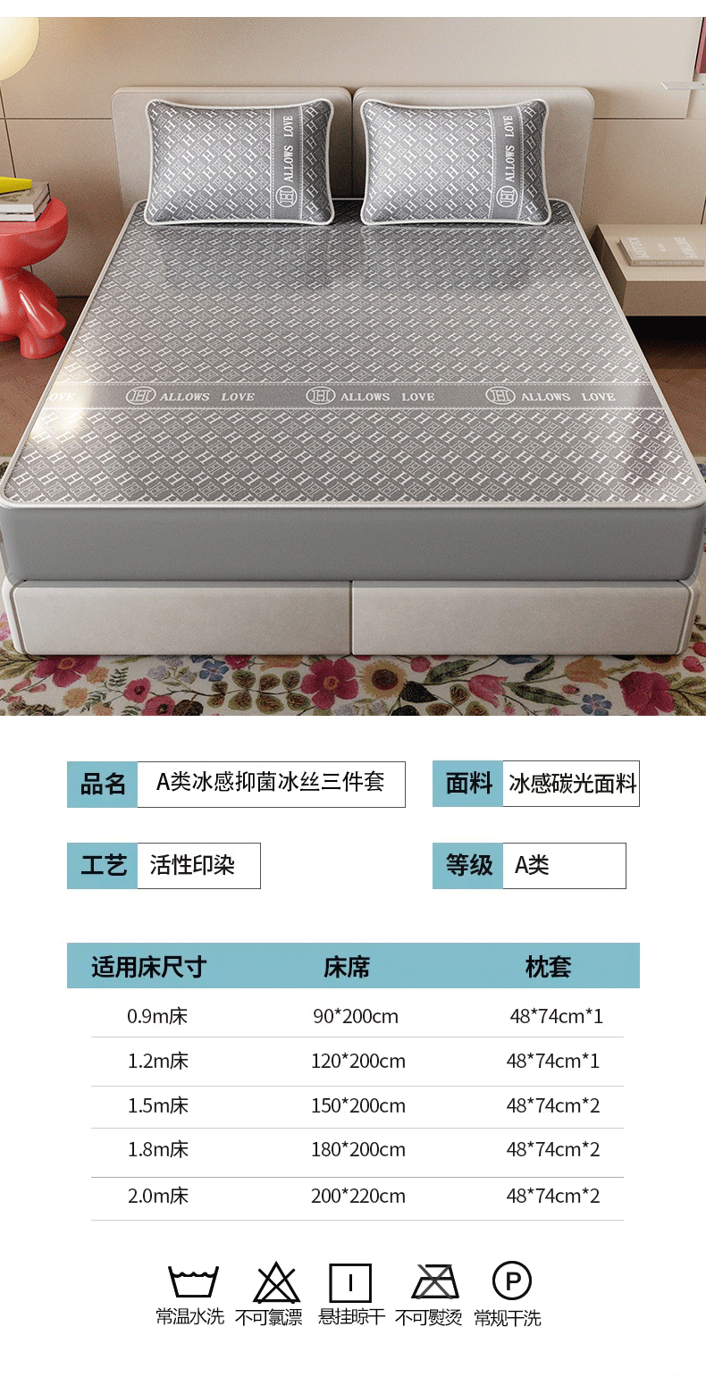 当前位置: 91家纺网 > 商品网购 > 床上用品 > 凉席 > 凉席套件 > 好福居 2026新款A类冰感抑菌印花冰丝席凉席-床笠款-床席款 灰H-床笠款