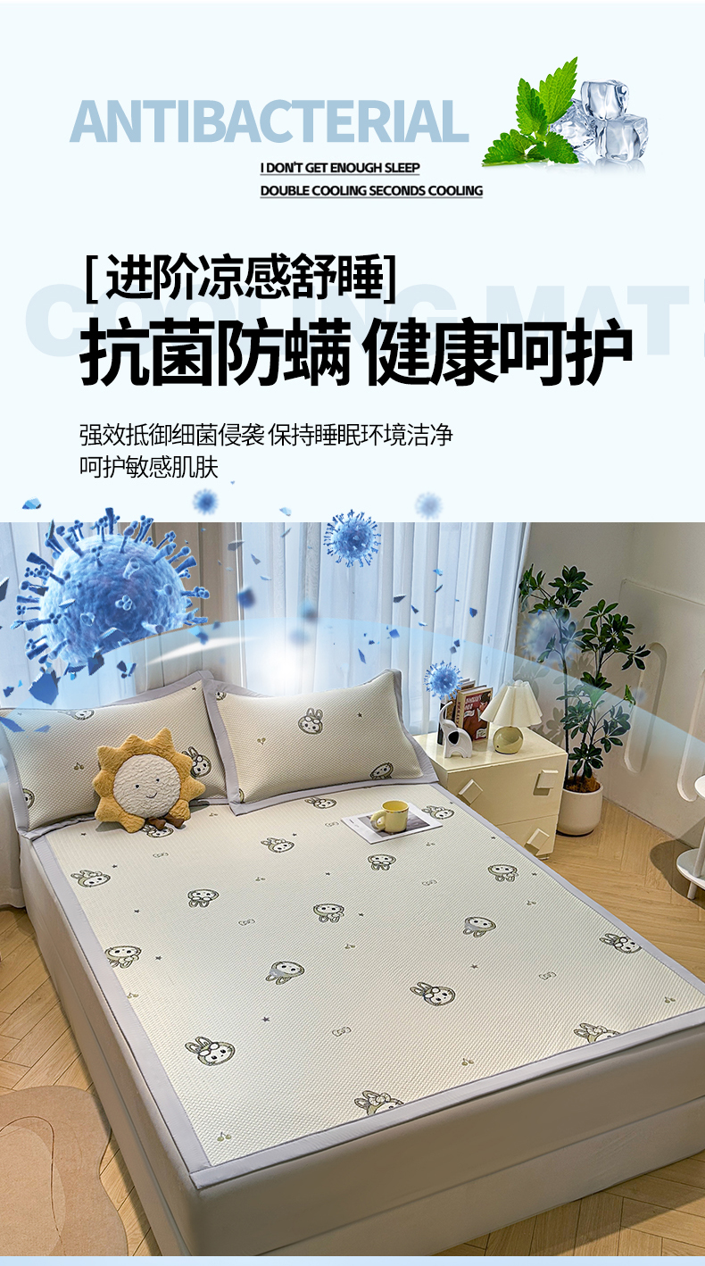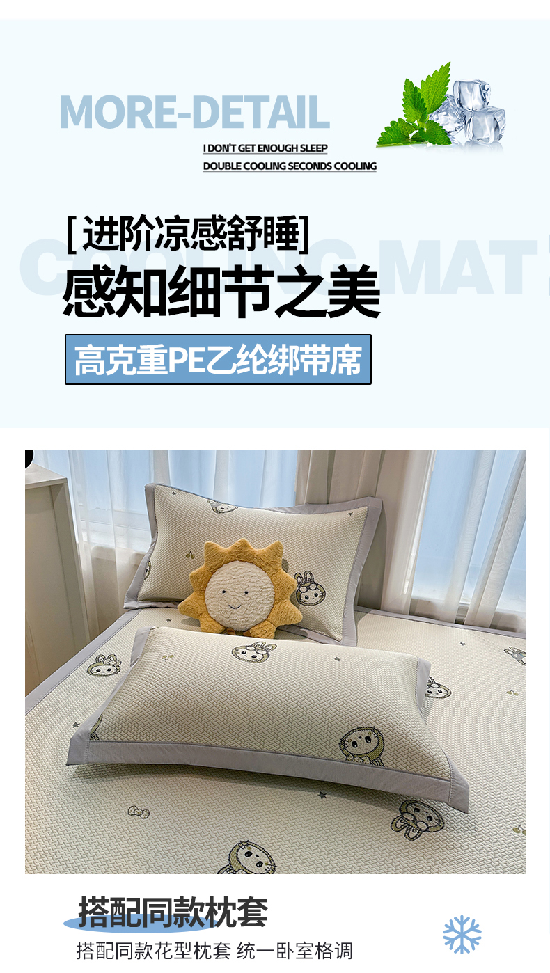 商品名称:织雅漫 2026新款卡通实拍小红书爆款凉豆豆凉席100%PE 乙纶凉感可水洗床席席子 可爱布布
