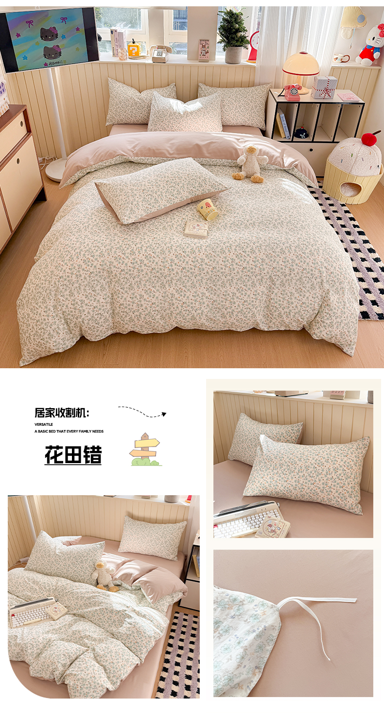 (总)鑫佳居 2026新款古法仿棉小清新印花四件套,苹果乐园,豹纹猫,彩虹圆点,格调熊,花田,花田错,华茵春日,灰蝴蝶,梦之园,念花溪,软芙小狗,童趣甜日,星星崽,鱼梦,愿落星河,k蒂猫