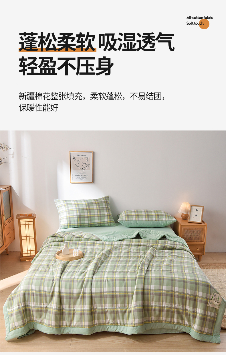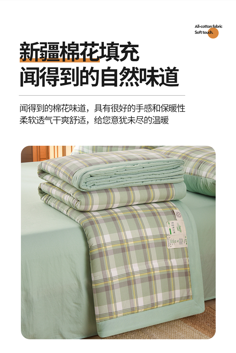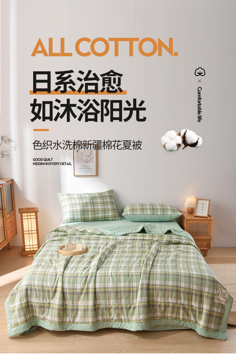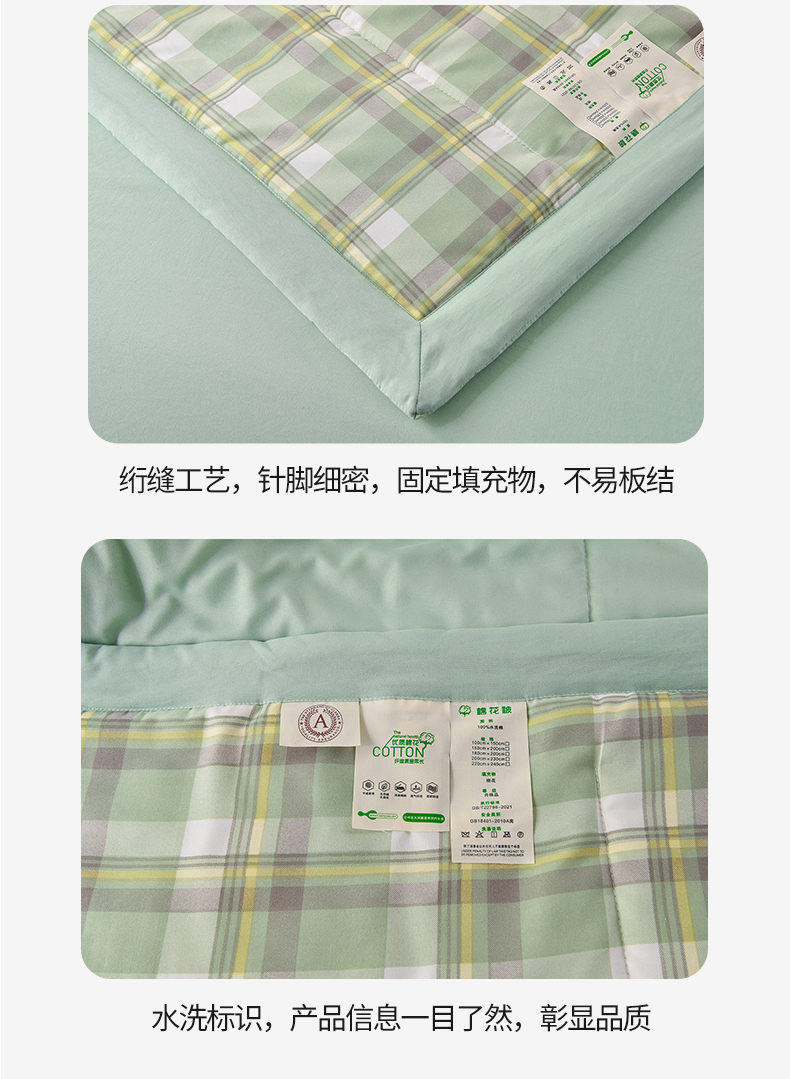 商品名称:欧朵家纺 2026春夏新款水洗棉新疆棉花被夏凉被空调被 简兮-绿