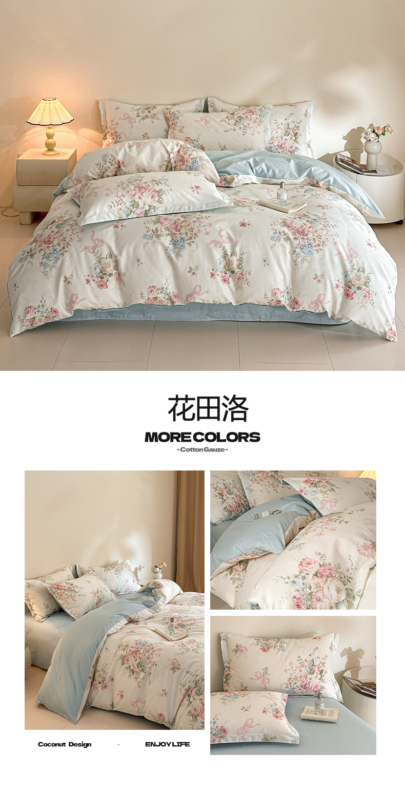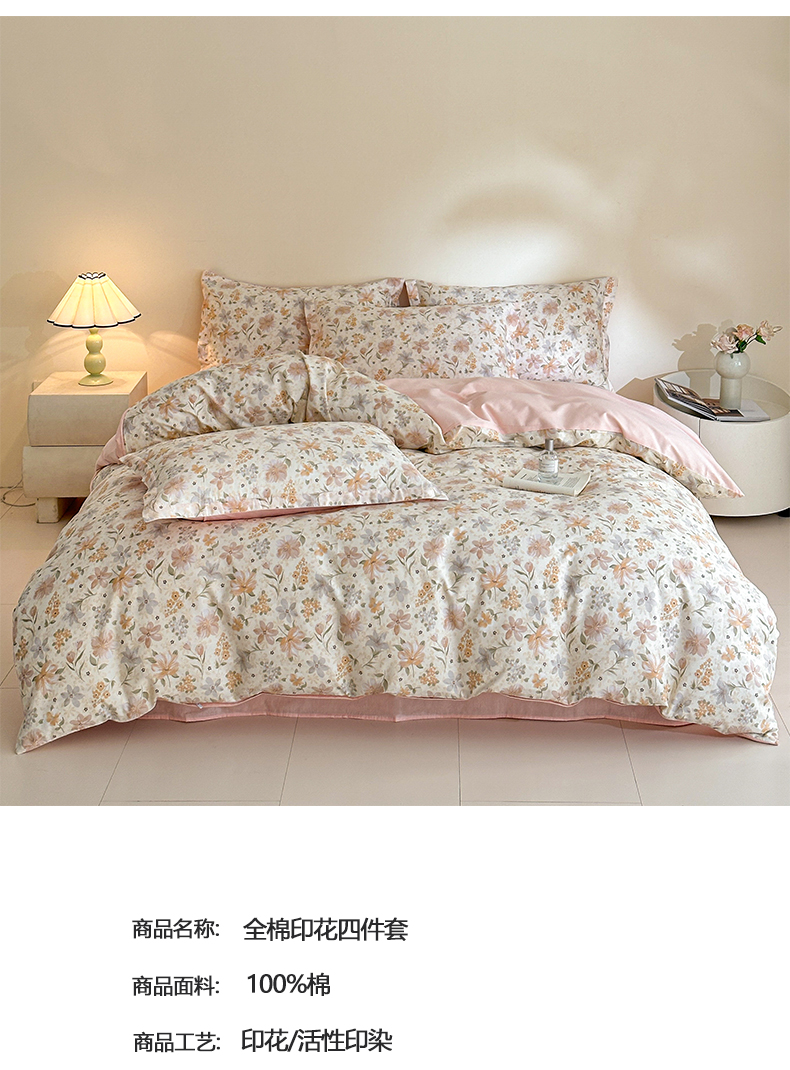 商品名称:涵宸家纺 2026新款全棉印花花卉四件套 苏屿
