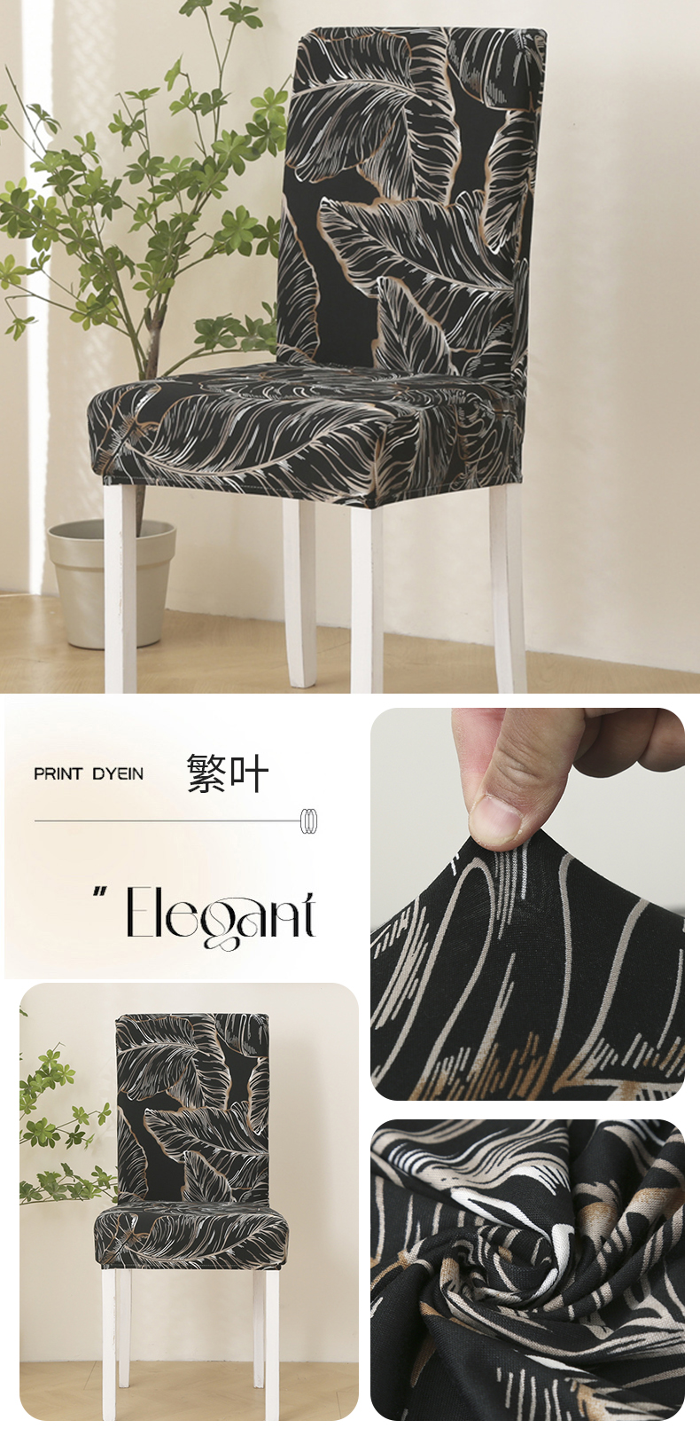 雅竹家纺 牛奶丝印花连体椅套 繁叶