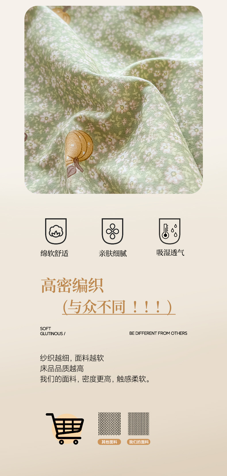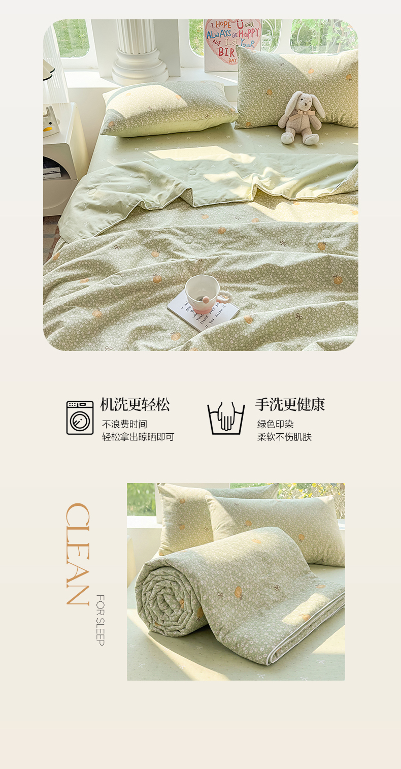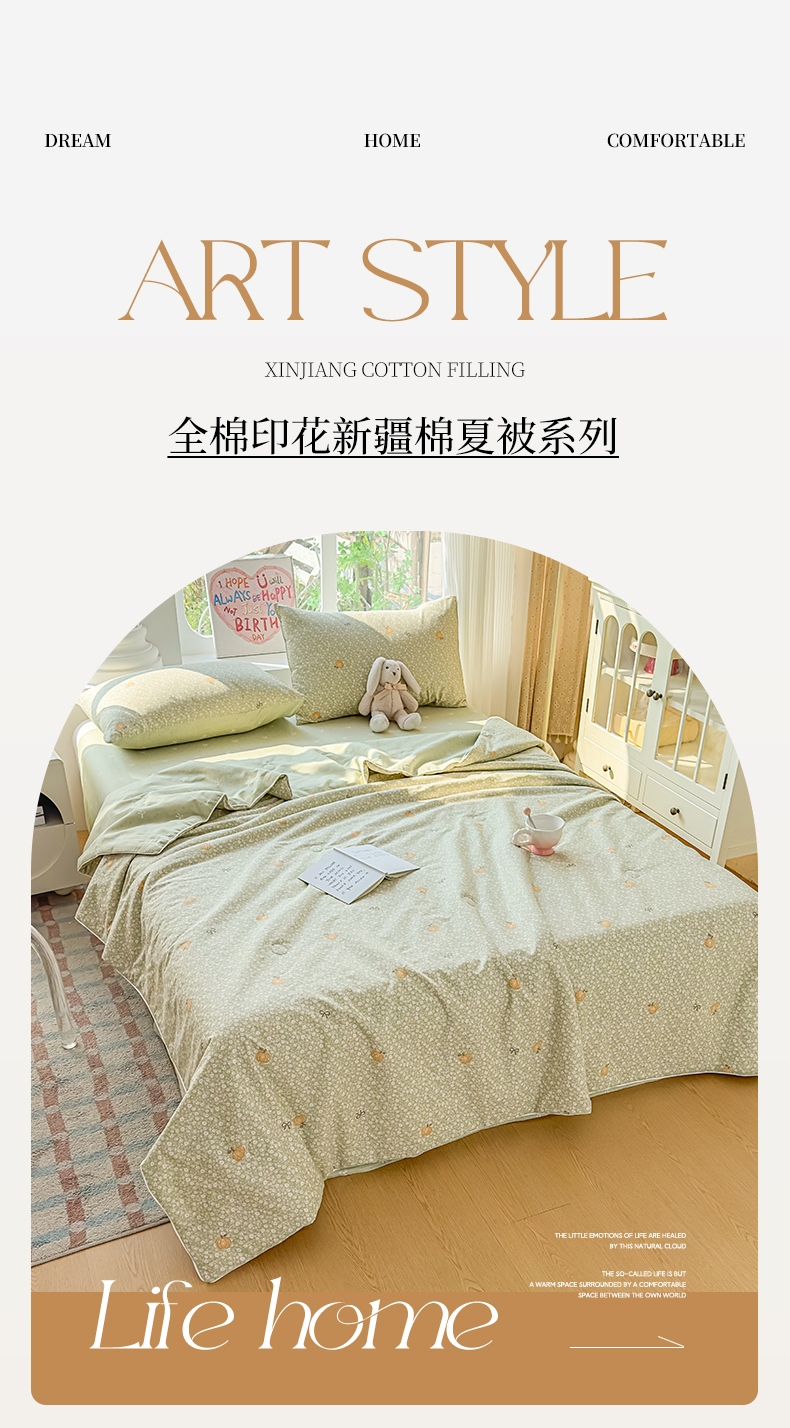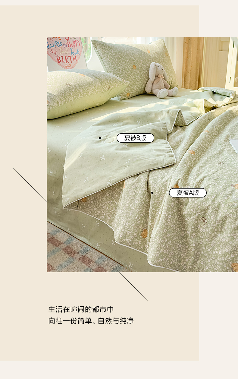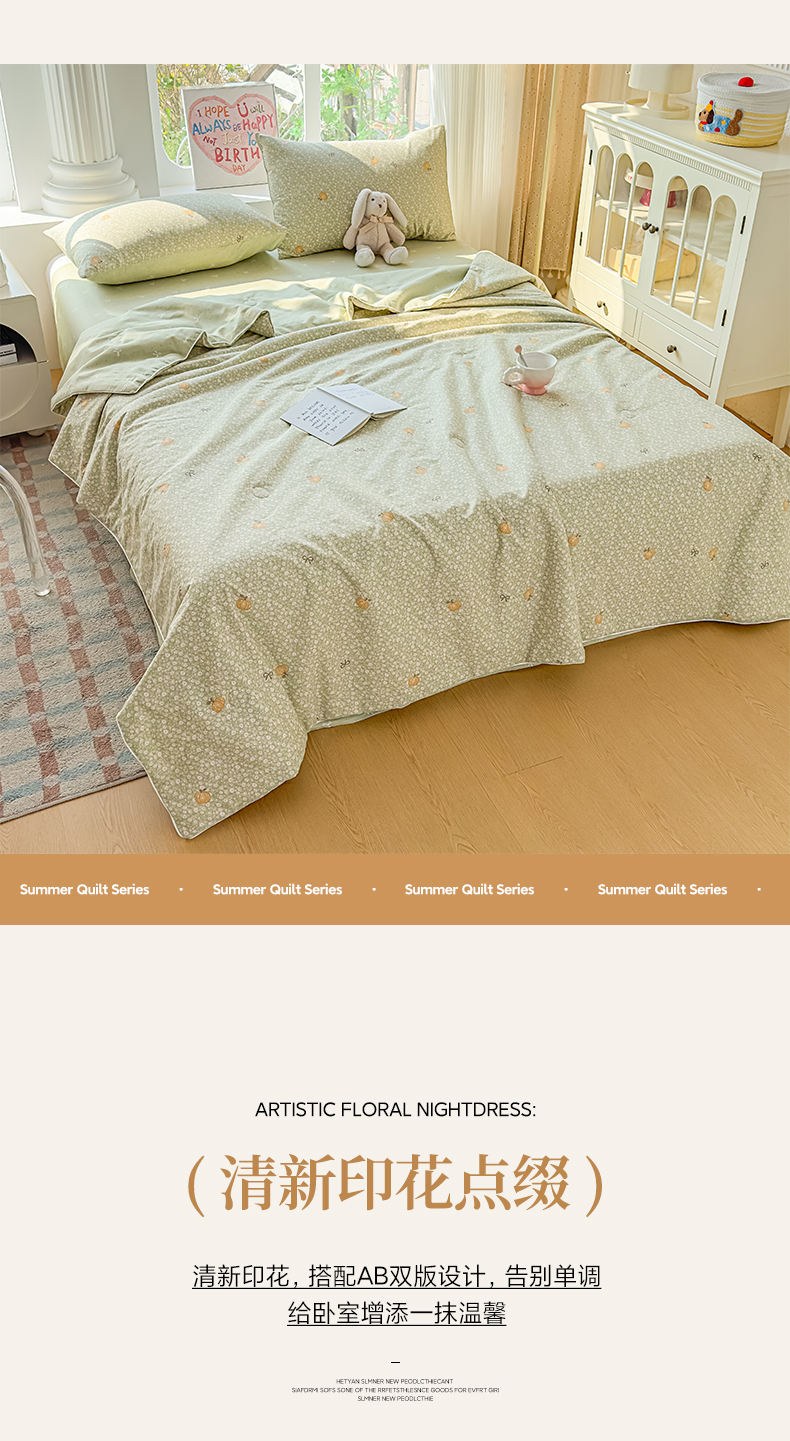 • 91家纺网 家纺一手货源 找家纺 金喜 2026新款100%里外全棉夏被夏被四件套 碎花拾影-绿