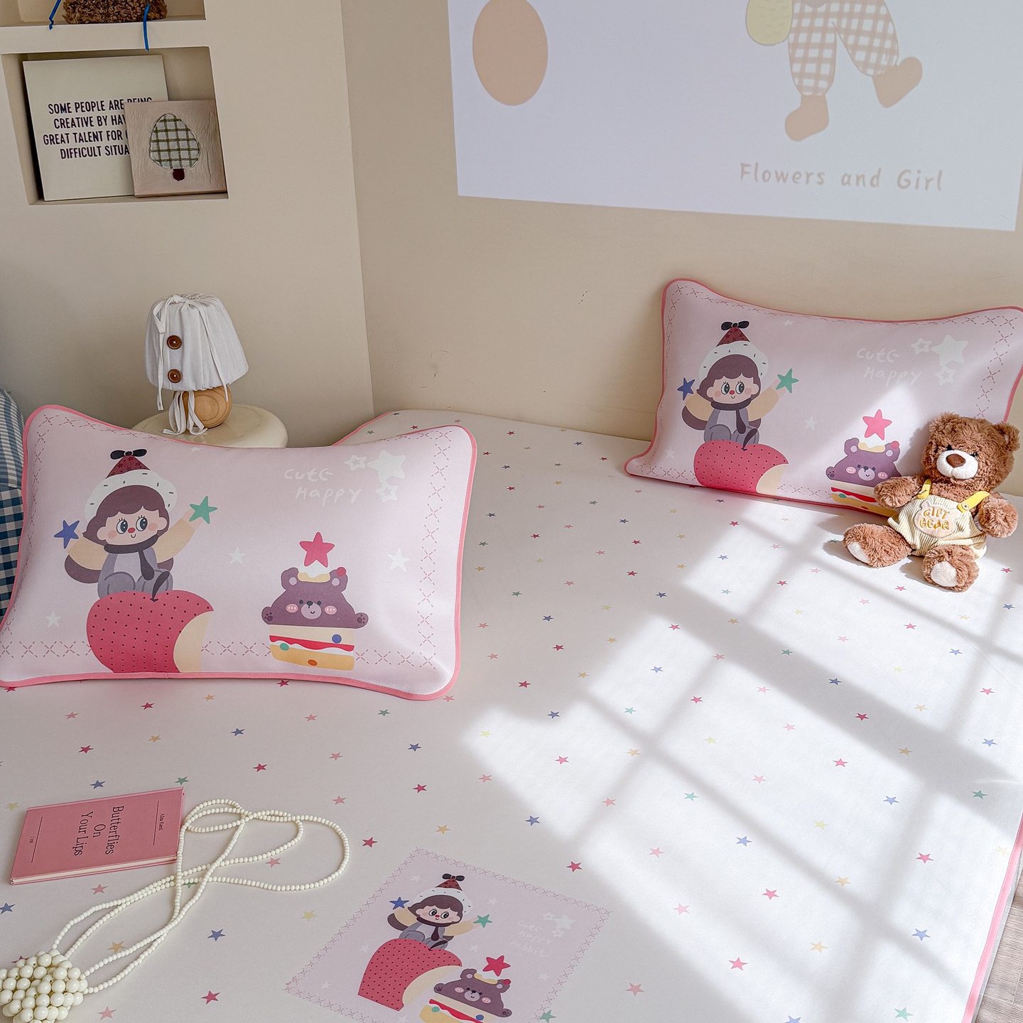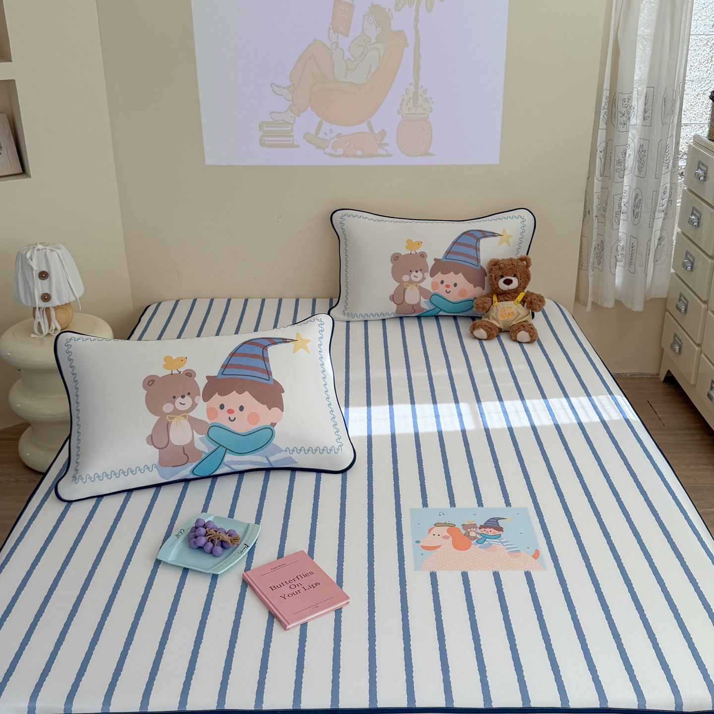(总)美乐迪家纺 2026新款儿童水光冰丝凉席席子凉席,比熊,冰淇淋小兔,大脸猫,大象,举苹果,梦幻小马,头套小猫,兔头小猫,星星男孩