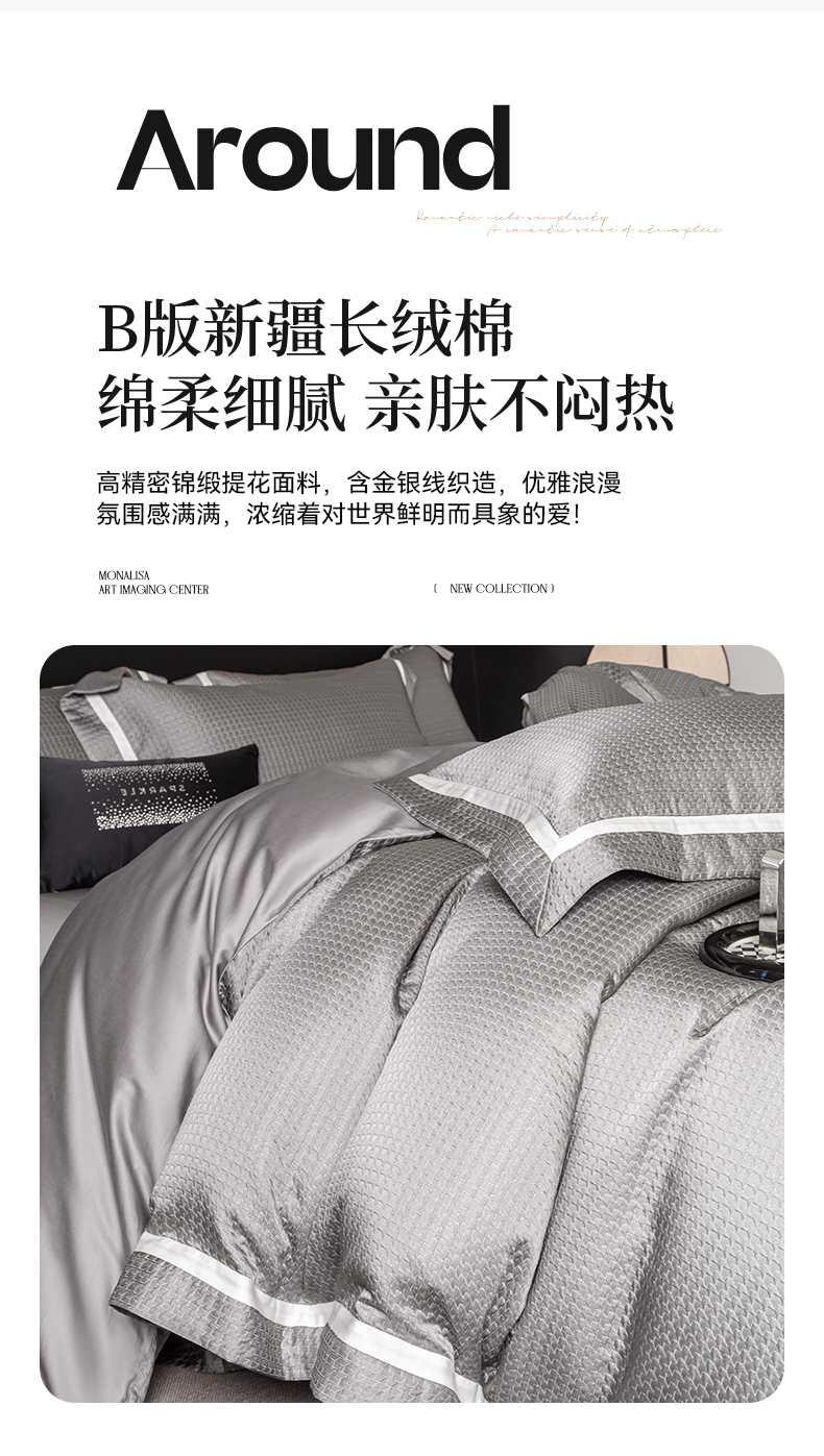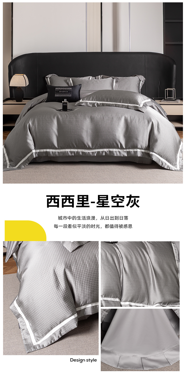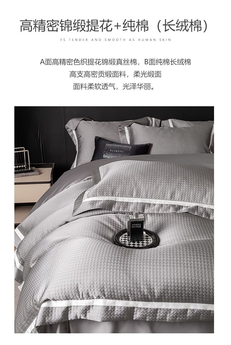 商品名称:家居1号家纺 2026新款西西里厚织高精密锦缎提花四件套(全网控价!活动立减券后价格不得低于:标准488元,加大518元!请大家把控利润!严禁内卷!会员优惠10元!) 西西里-星空灰
