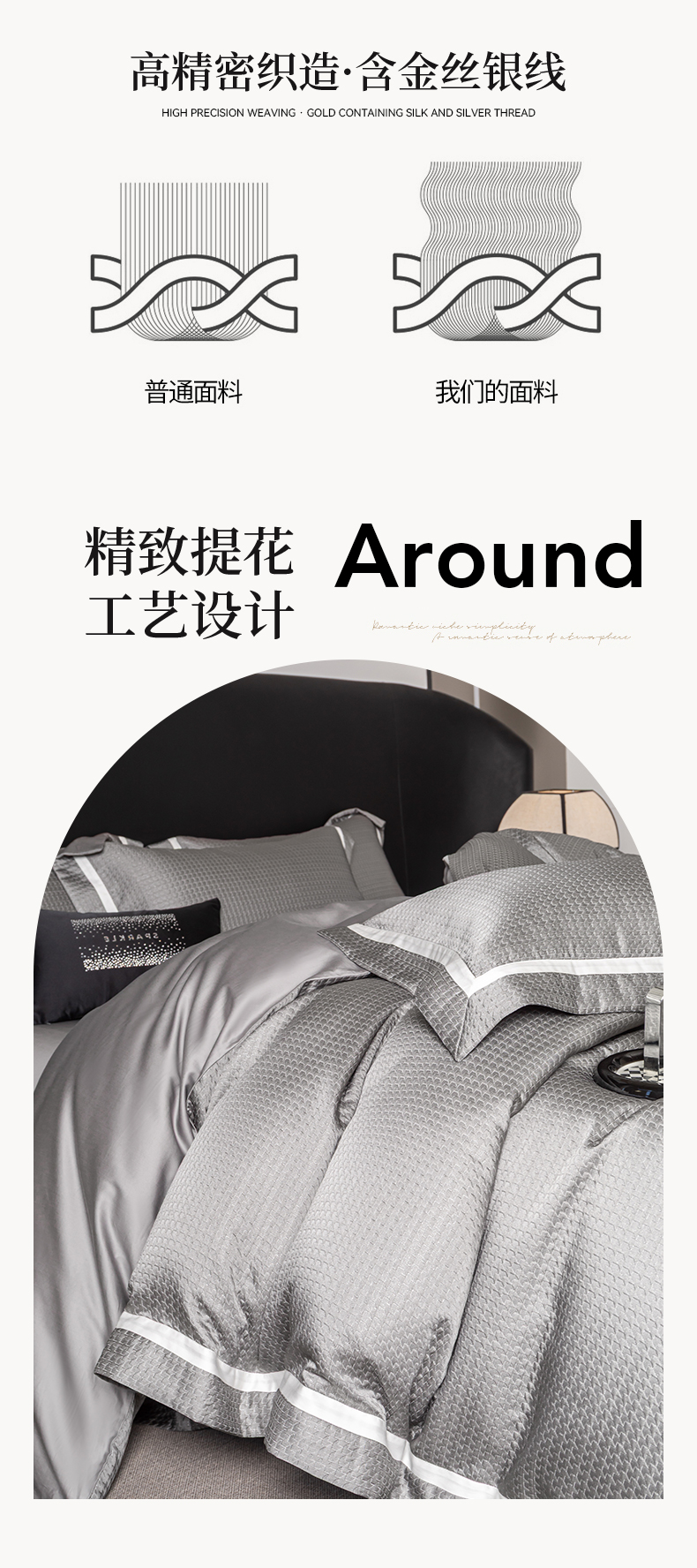 (总)家居1号家纺 2026新款西西里厚织高精密锦缎提花四件套(全网控价!活动立减券后价格不得低于:标准488元,加大518元!请大家把控利润!严禁内卷!会员优惠10元!),西西里-彩银金,西西里-流金粉,西西里-星空灰
