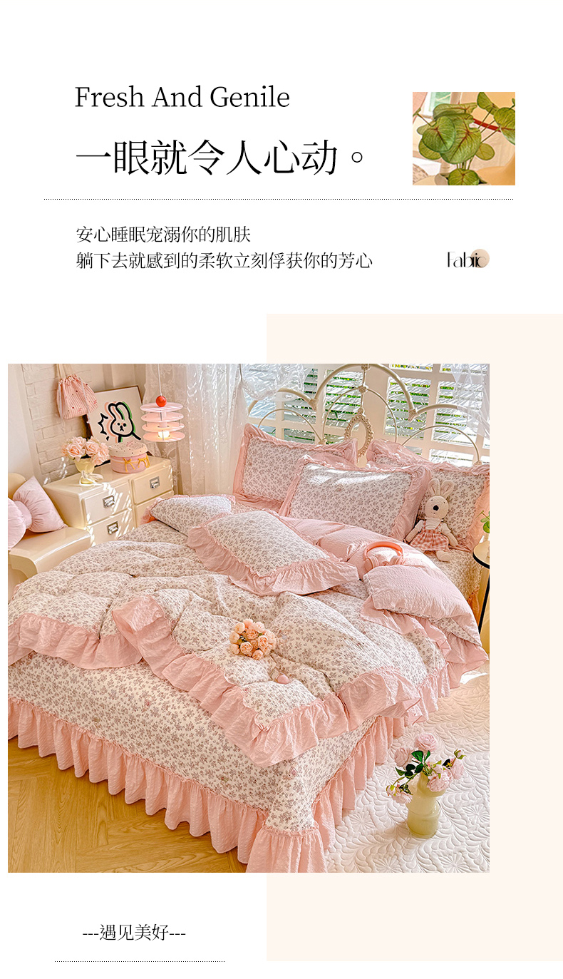 (总)韩约家纺 2026新款韩式花边古法棉感床盖四件套,知否,午后时光,漫花蝶舞,莓莓果,花影,甜心狗,初遇,萝莉,雨沫