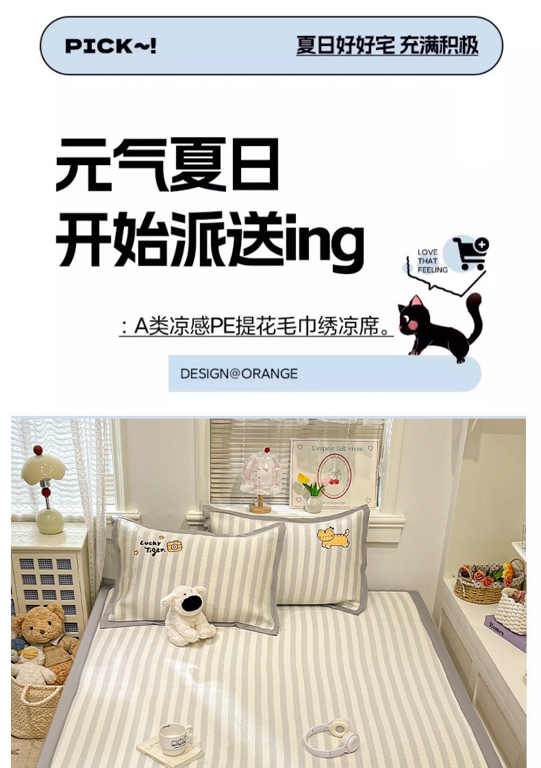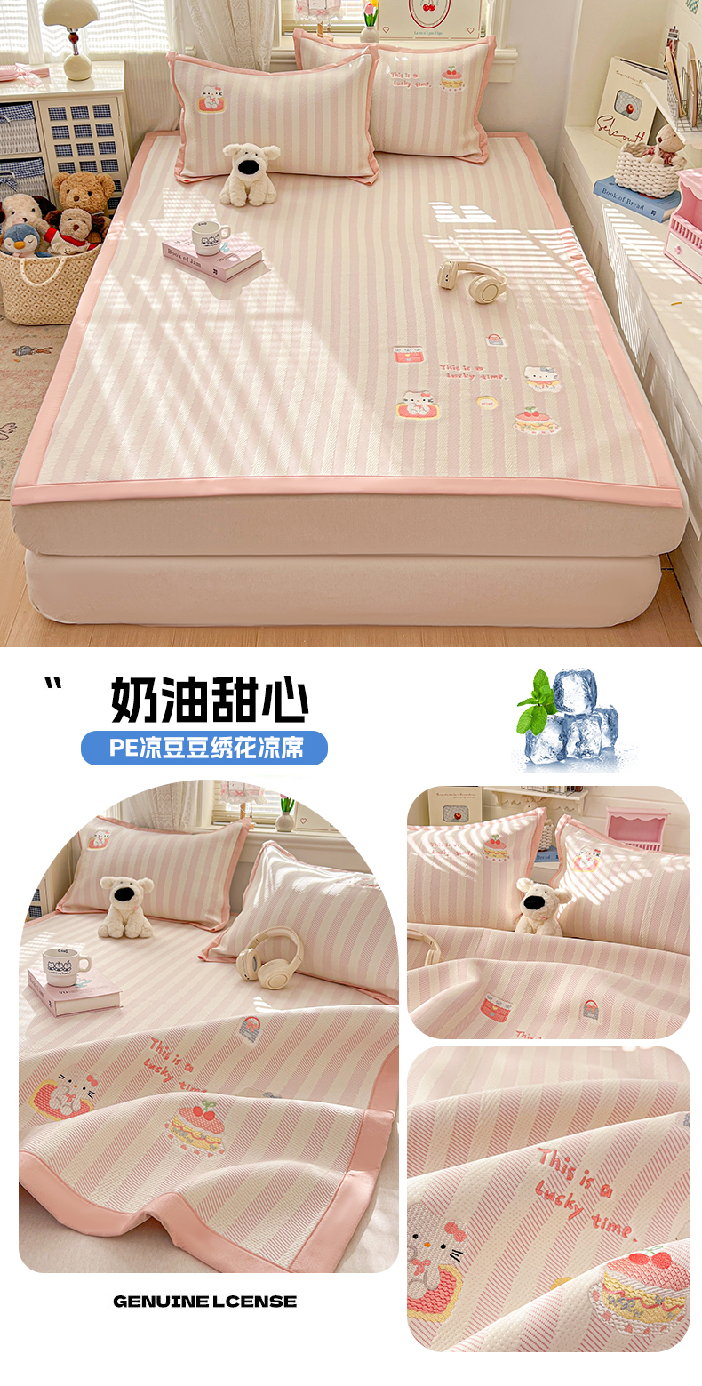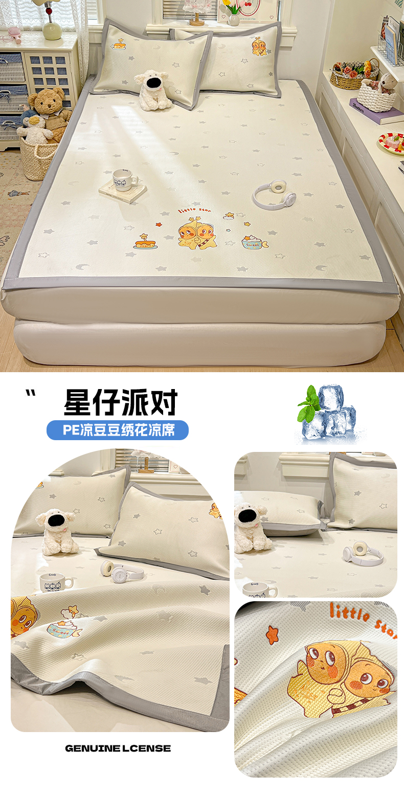 (总)川悦生活 2026新款PE凉感提花豆豆席平铺款三件套,费尔冰雪,尼尔-粉,尼尔-星灰,朴朴小旺,甜心-奶粉,甜心-水蓝,甜心-月灰,甜心奶猫,夏季岛屿-粉,夏季岛屿-月银,星花小猫,月桂-月银,奶油星月,爱心猫咪-茶青,爱心猫咪-月白,清爽蓝调,小熊仔,樱桃果塔,沐月玫瑰-清粉