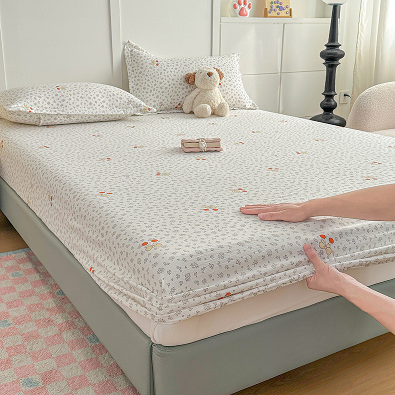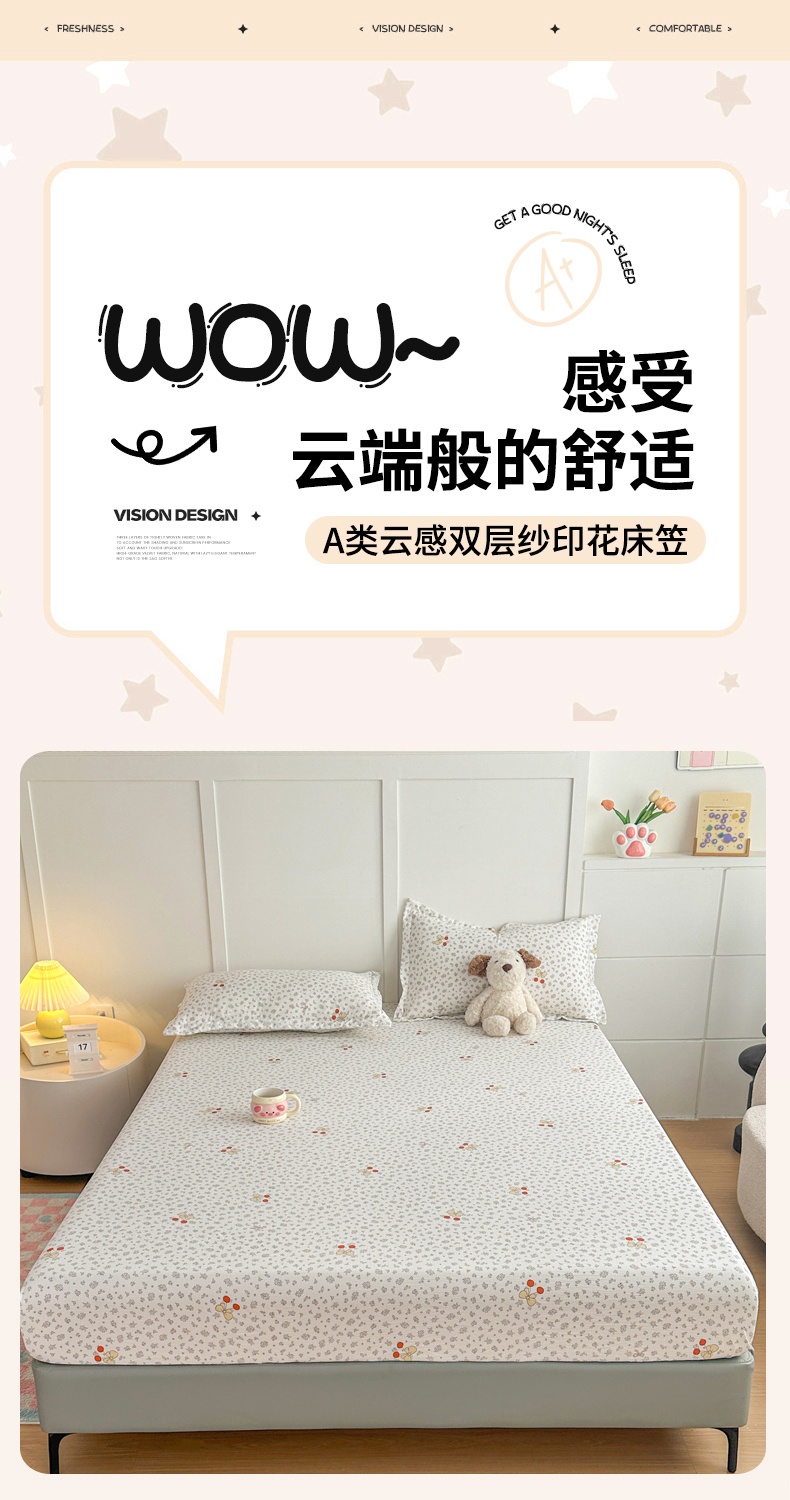 优雅星家纺 2026春夏新款a类泡芙双层纱床笠印花卡通全包围床垫保护套单床笠 床笠单件 樱桃