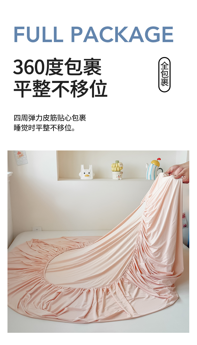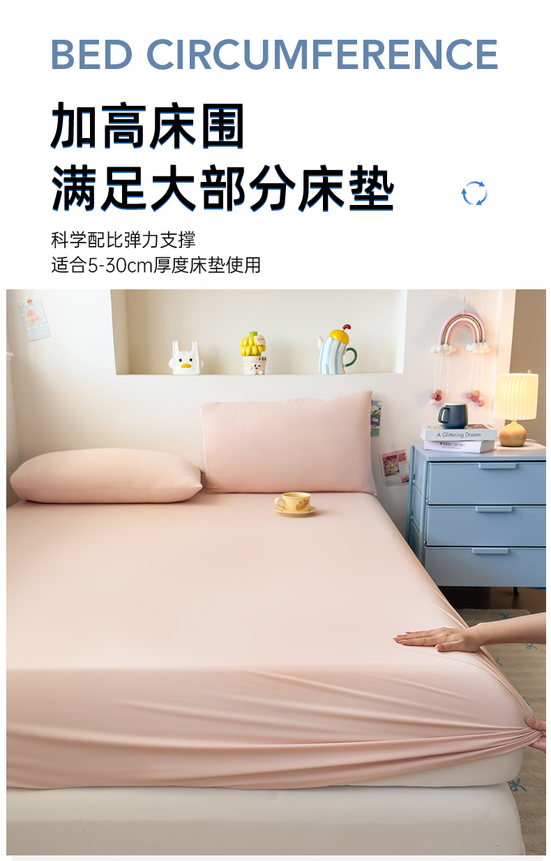 (总)大吉 2026新款纯色锦氨系列单床笠,深睡蓝,清月紫,摩卡咖,奶油白,天空蓝,薄荷绿,荔枝粉,本白,雪绒灰