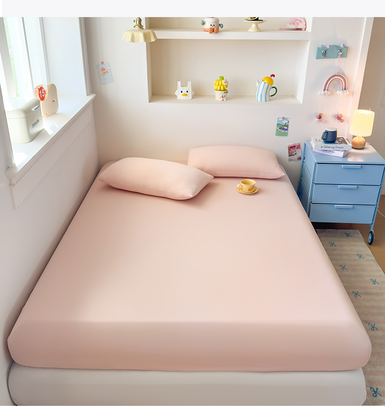大吉 2026新款纯色锦氨系列单床笠 荔枝粉