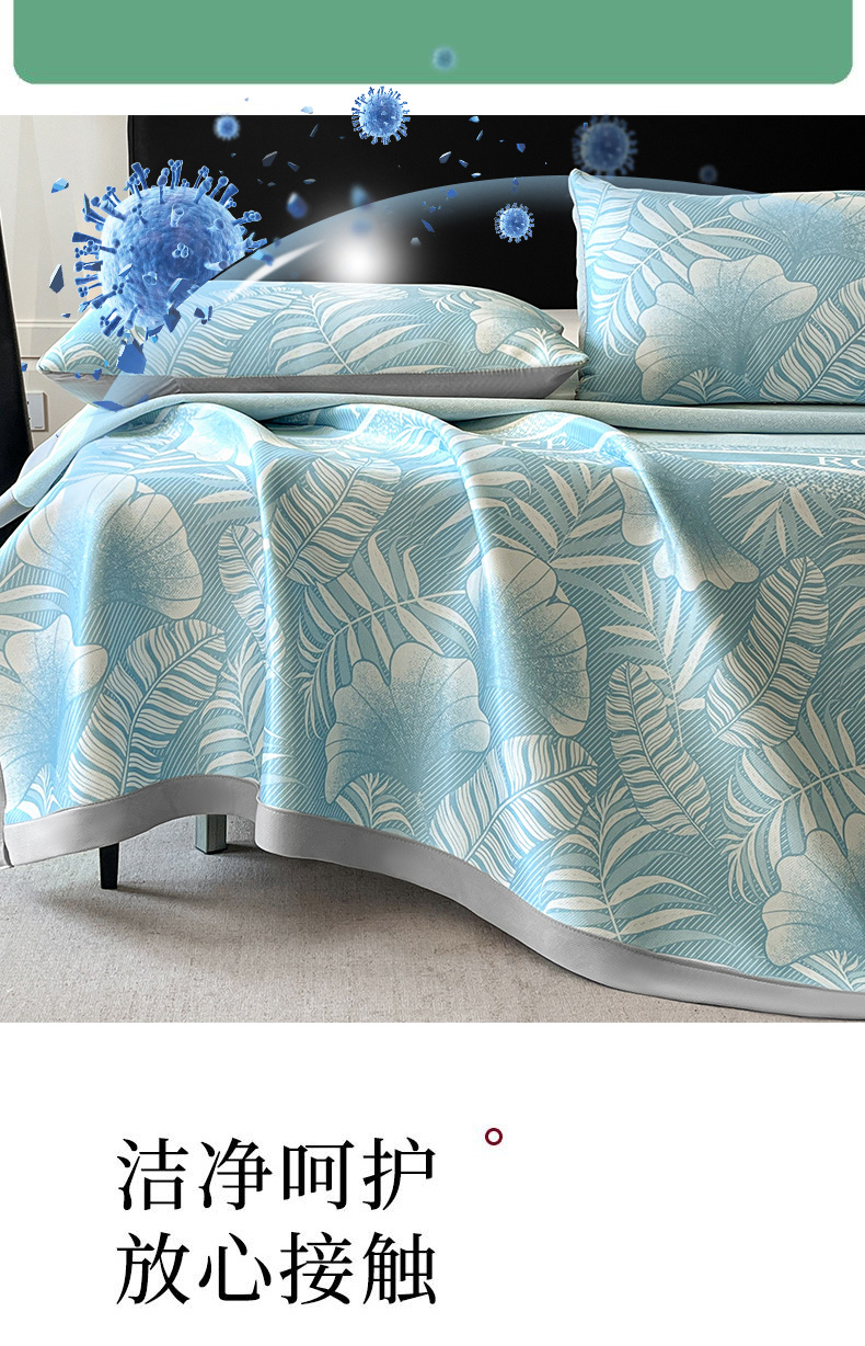 (总)席佬大 2026新款负离子抑菌冰丝软席子凉席-床笠款,灰色,粉色,蓝色,绿色