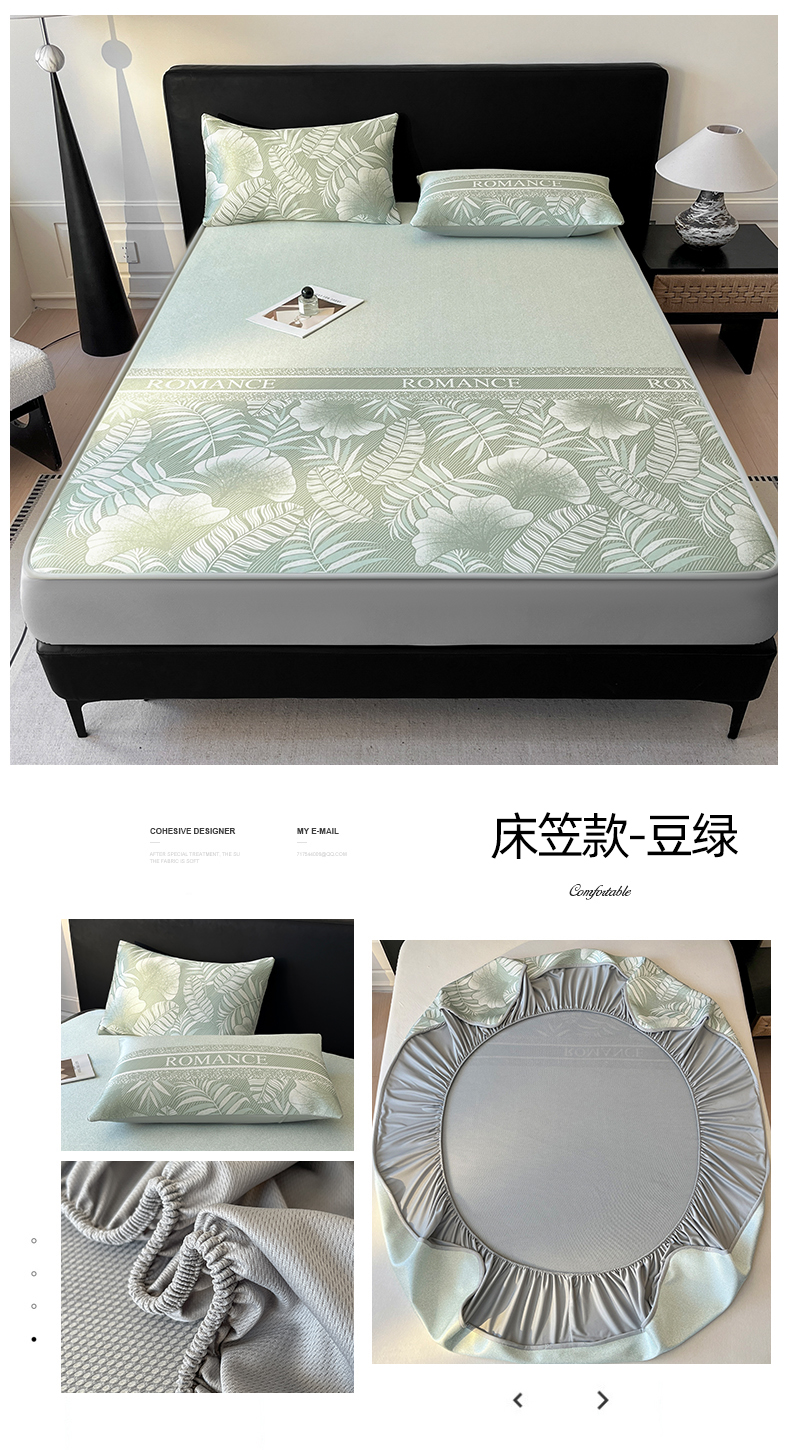 商品名称:席佬大 2026新款印花冰丝凉席席子 床笠款-豆绿