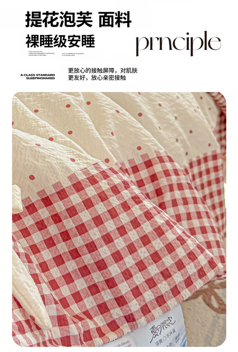 (总)瑞禾家纺(原阿亮) 2026新款春夏新款提花泡芙棉贴布绣手包边单夏被夏被四件套-丘比特的爱恋,丘比特的爱恋-海盐蓝+蓝格,丘比特的爱恋-奶粉波点+粉波点,丘比特的爱恋-奶黑波点+黑小格,丘比特的爱恋-奶红波点+红格,组合图仅供展示-不可下单