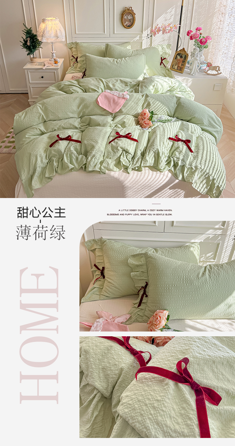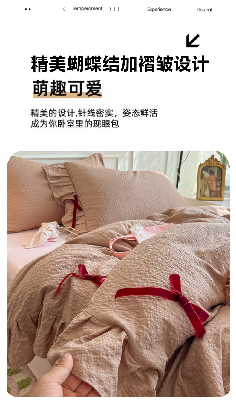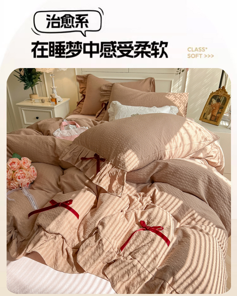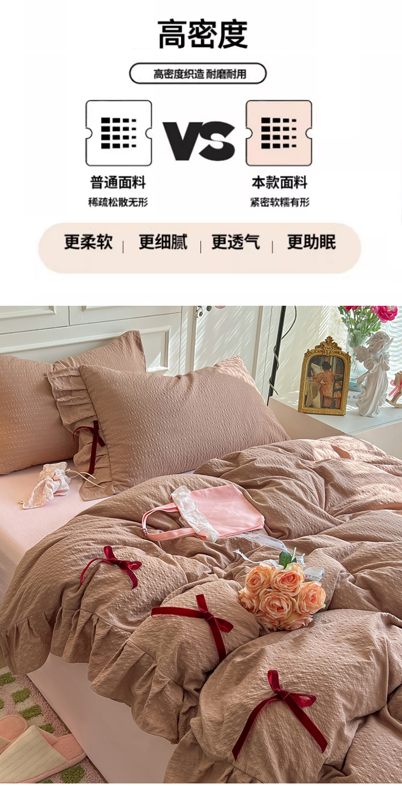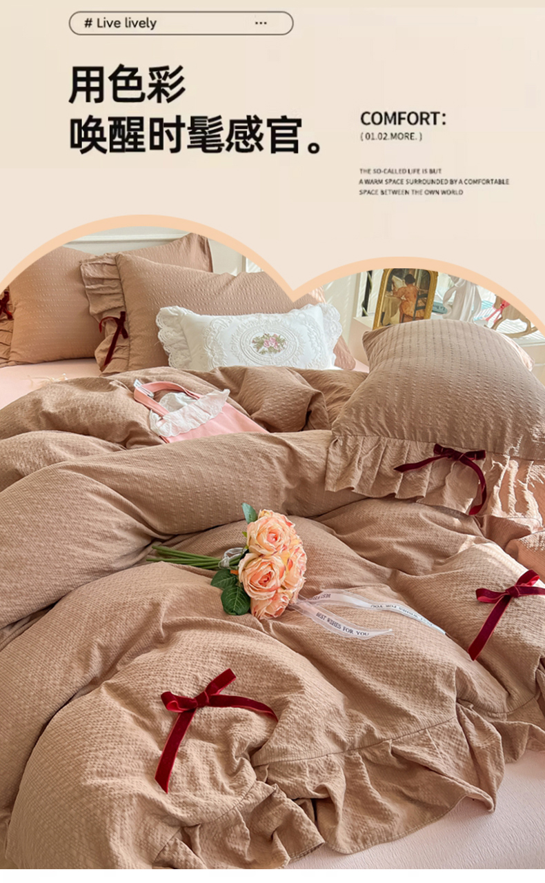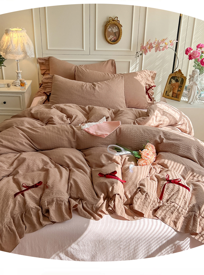 当前位置: 91家纺网 > 商品网购 > 床品套件 > 四件套 > 其它四件套 > 瑞禾家纺(原阿亮) 2026春夏新款提花泡芙棉花边蝴蝶结床单床笠四件套-甜心公主 甜心公主-卡其